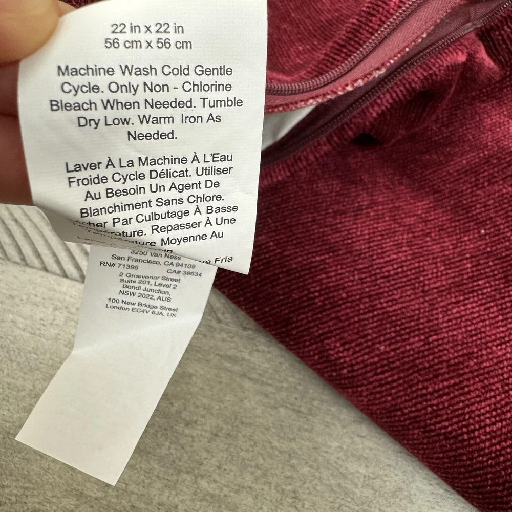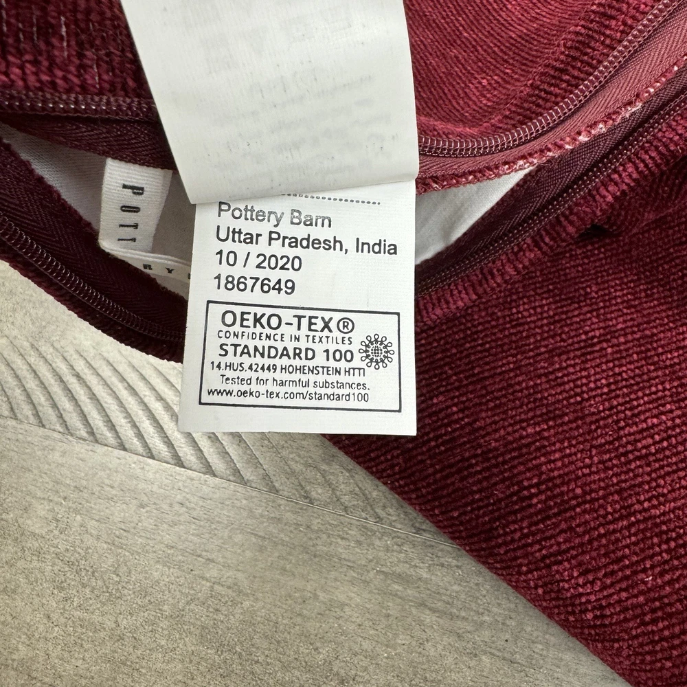 Pottery Barn Lucia Chenille Pillow Cover Red 22”x22” Markings Read NWOT New without tags item / open box - item ships without manufacturer packaging Please note, there is a sharpie mark on one side of the pillow cover / there is a small dot on the other side - reference all photos Dimensions: 22” sq