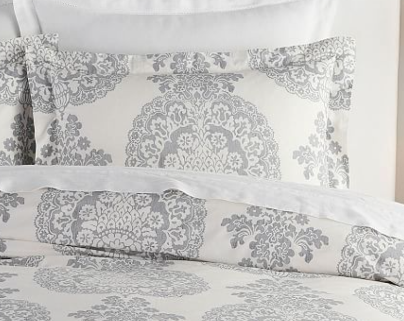 Pottery Barn Lucianna Medallion Sham Standard Percale Gray 26x20 NEW- photo shows coordinating bedding -not included-...