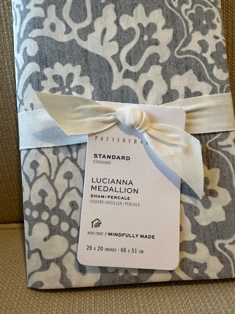 Pottery Barn Lucianna Medallion Sham Standard Percale Gray 26x20 NEW- photo shows coordinating bedding -not included-