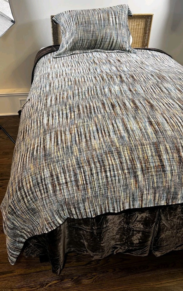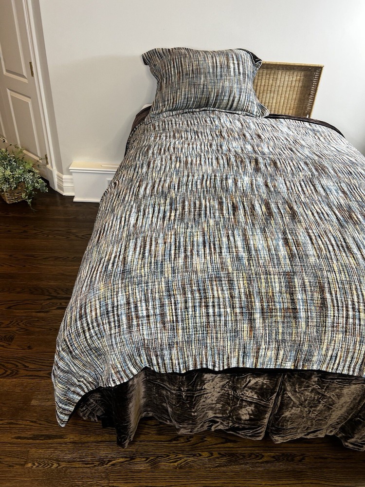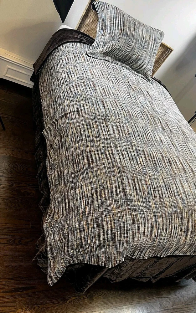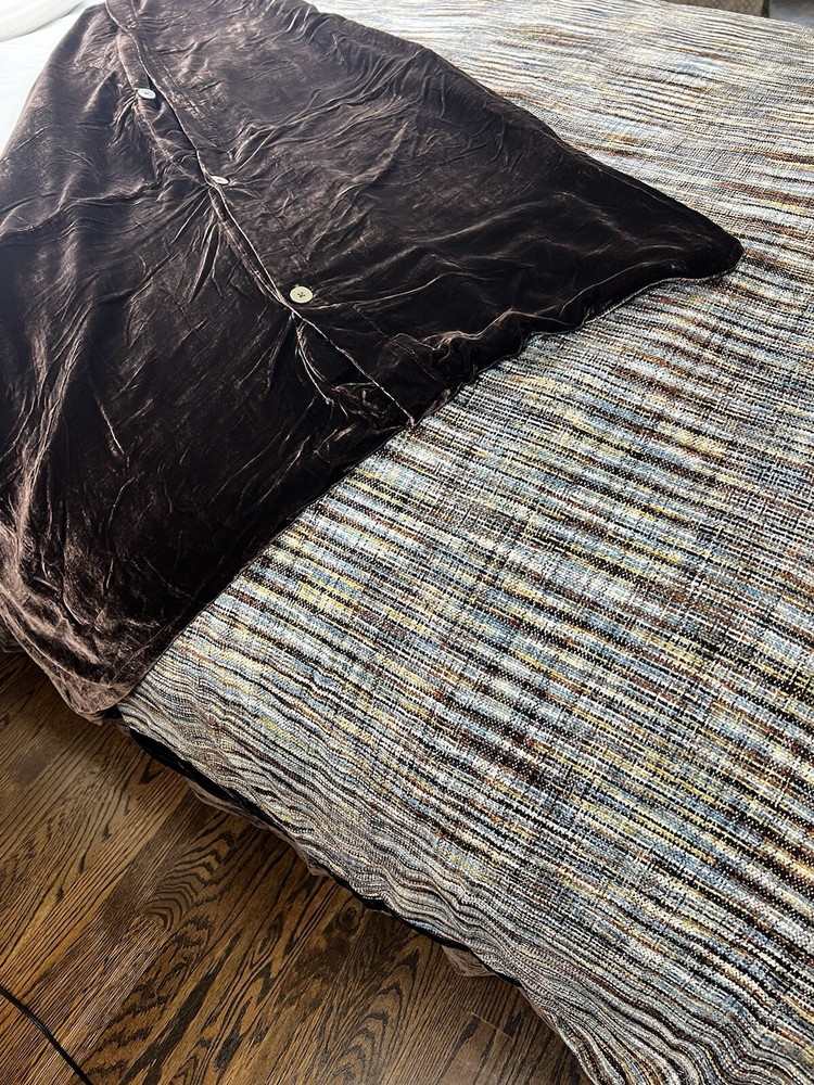 Pottery Barn Mid Century Brown Velvety Multicolored Chenille MCM-Queen SET (3) One Queen Pillow Sham Queen Duvet Cover Queen Bed skirt overhang is 14" All in Excellent Pre-loved condition, Mint!...