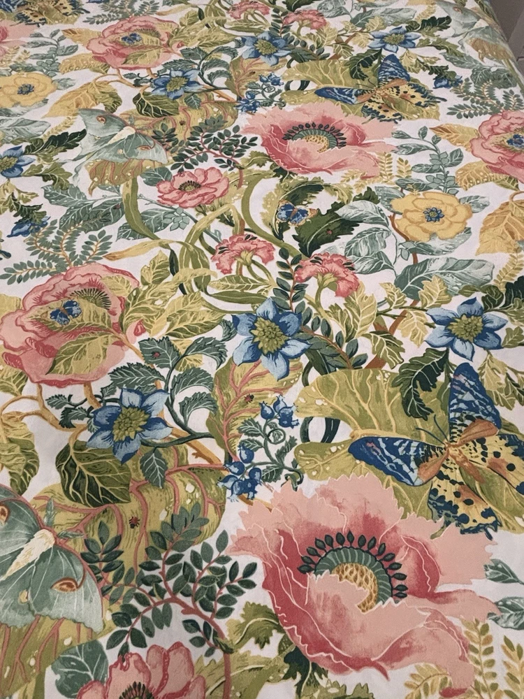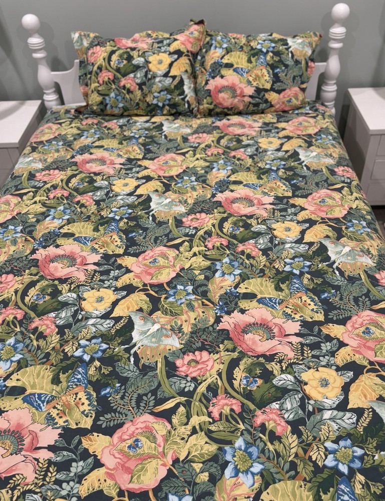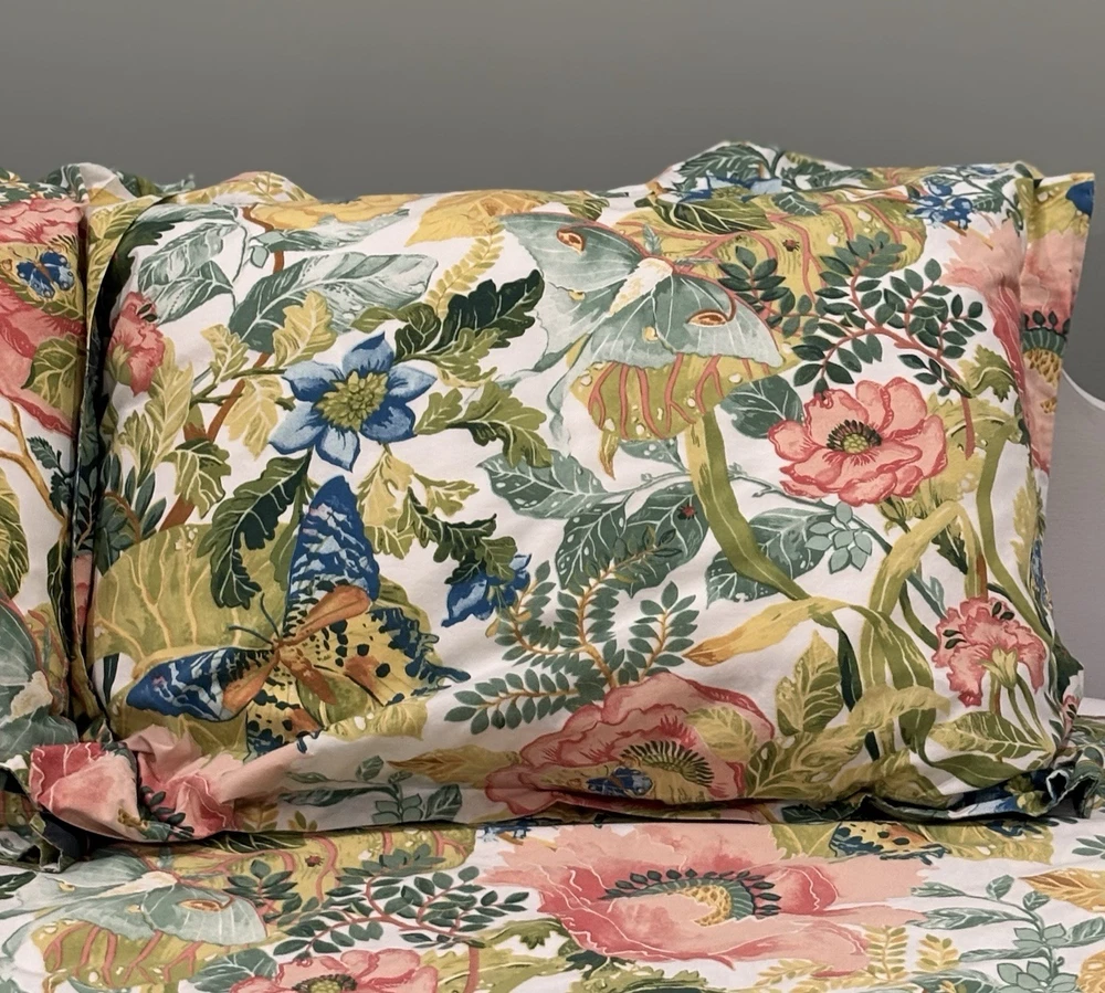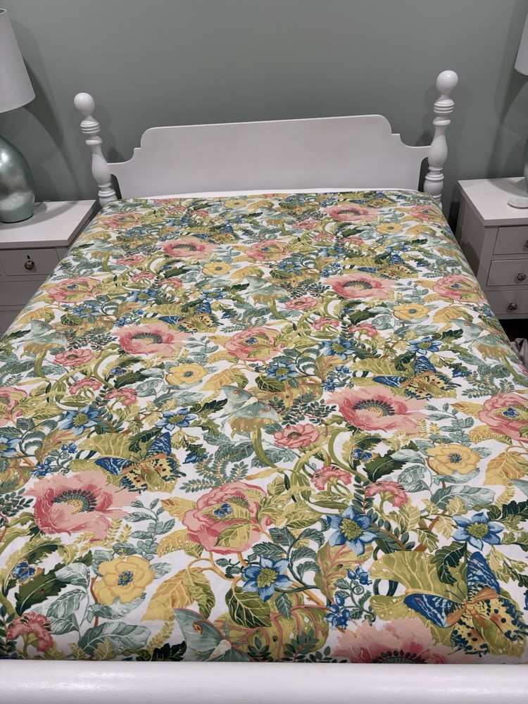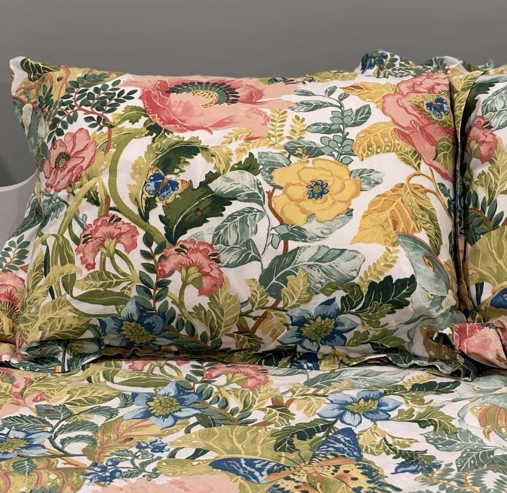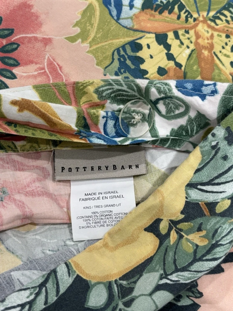 Great preowned condition without stains, tears or excessive signs of wear. The duvet size is King, but it’s photographed on a Queen sized bed so the fall will be different on a King bed. The shams are Standard size. Please check the photos for more information on condition and message with any questions. Thanks!