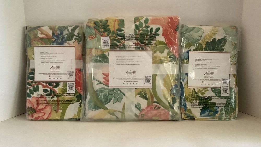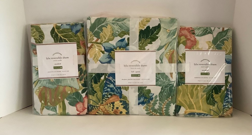 POTTERY BARN LYLA GARDEN REVERSIBLE FULL / QUEEN DUVET COVER & 2 STANDARD SHAMS NEW WITH TAGS This bedding brings the gorgeous sights of spring indoors. The soft colors take on a bolder look when you flip to the same pattern with a darker background on the reverse. Material is 100% cotton and the set is machine washable for easy care. Fast shipping from a smoke-free, pet-free home. Thank you for looking. Feedback from buyers: * "This is, by far, the best shopping experience I’ve had ever. Period. This seller went above and beyond to make sure she did every single thing possible to get me the sheet set I’d ordered. And then she followed up with a generous thank you. I’ve never had so much fun buying something!" * "The seller could not have made it any easier to make a purchase. The communication concerning the status of shipping and any follow up questions was quickly answered. This is what real customer service feels like. I would purchase from this seller again!" * "So so sorry for the belated feedback. This was the best seller I have ever encountered on eBay or anywhere for that matter, so kind, thoughtful, personable, accommodating. Went out of her way to get me the items even faster than ASAP w/out upcharge. Everything was pristine, beyond perfect, impeccably wrapped, I am so grateful and was thrilled to have the items needed for my first post COVID dinner party. She is a model for all sellers, her customer service is beyond compare, incredible actually."