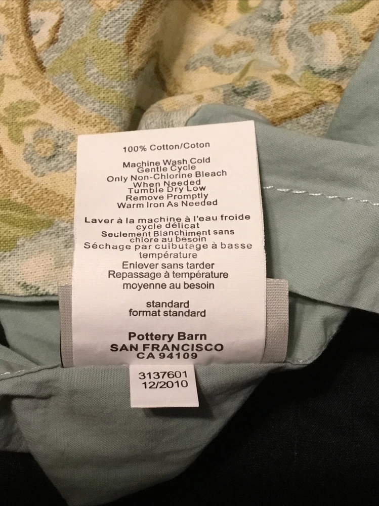 Add a touch of cottage charm to your bedroom with this beautiful Pottery Barn Lyndsay Paisley Standard Sham. The rectangular pillow sham is designed with a lovely floral pattern in shades of blue, green, and brown, featuring paisley and bird accents that will complement any decor. Made of 100% cotton with a thread count of 200 or less, this sham is machine washable, easy to care for, and tumble dryable. Ideal for teens and adults, this Pottery Barn pillow sham is not quilted and comes with an envelope closure type. Perfect for adding a pop of color to your bed or couch, this sham is part of the Pottery Barn Foundations product line and is made in China. Get your hands on this stylish and comfortable pillow sham today!