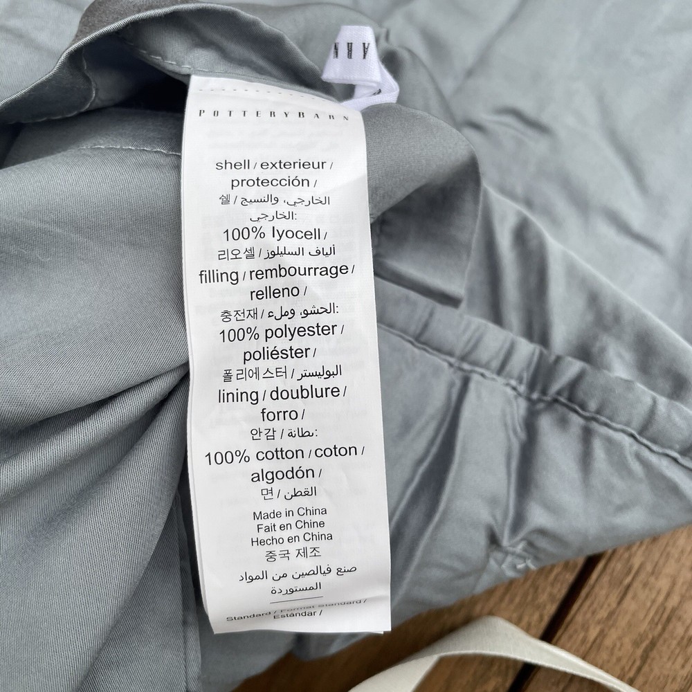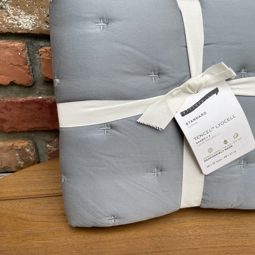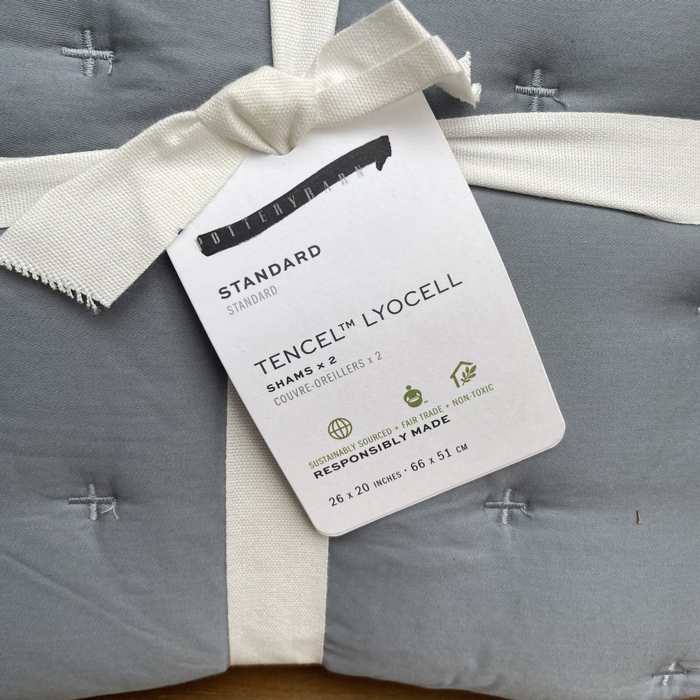 Pottery Barn Lyocell Tufted Quilted Standard Pillow Shams Set/2 Riviera Blue NWT New with tags item / open box - set of two shams Please note, external paper tags have some markings/tears Dimensions: ...