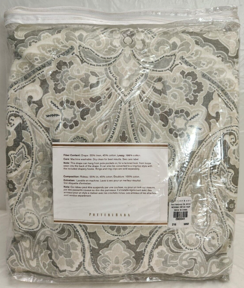 New With Tagged, as Shown on Photos. Add a touch of modern elegance to your windows with the Pottery Barn Mackenna Drape 3-in-1 Pole Top. This drape features a stylish taupe multicolor pattern and is made of a soft and durable 55% linen and 45% cotton blend material. The drape is wall-mounted and has a rod pocket curtain heading for easy installation. Measuring 84 inches in length and 50 inches in width, this drape is perfect for any room in your home. It features a light filtering transparency and is lined for added privacy. The Pottery Barn Mackenna Drape 3-in-1 Pole Top is easy to care for and can be machine-washed. Upgrade your window treatments with this beautiful and versatile drape.