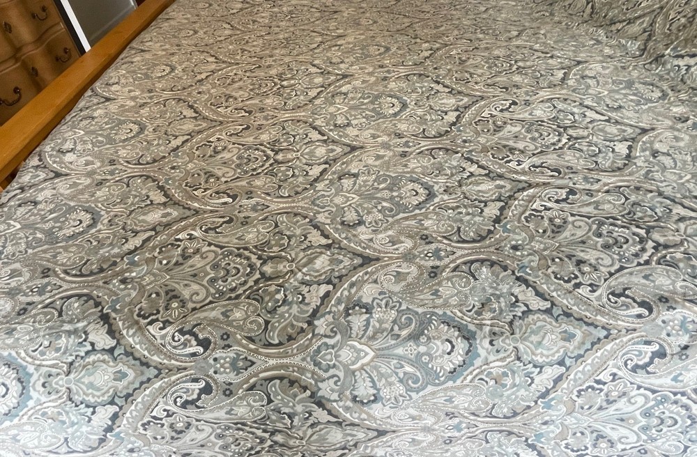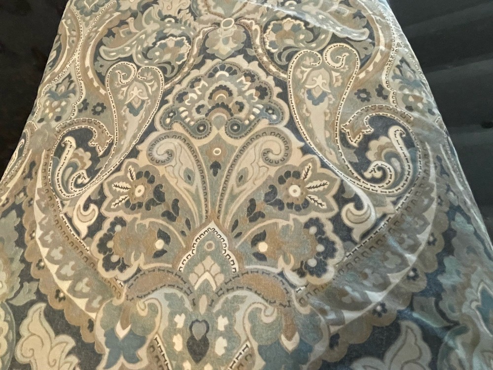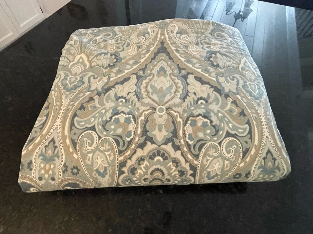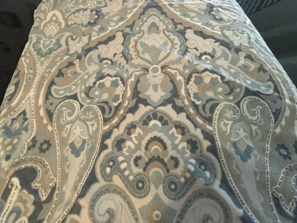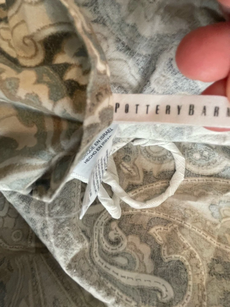 The Pottery Barn Mackenna KING Duvet Cover in teal paisley is a luxurious and stylish addition to any bedroom. Made from 100% cotton with a cozy organic cotton fill, this duvet cover is perfect for those looking for a farmhouse-style finish. With a beautiful paisley pattern and button closure, this duvet cover exudes a charming cottage vibe, making it a perfect choice for those who love a luxurious yet relaxed aesthetic in their bedroom decor. Very good preowned condition. Very good preowned condition.