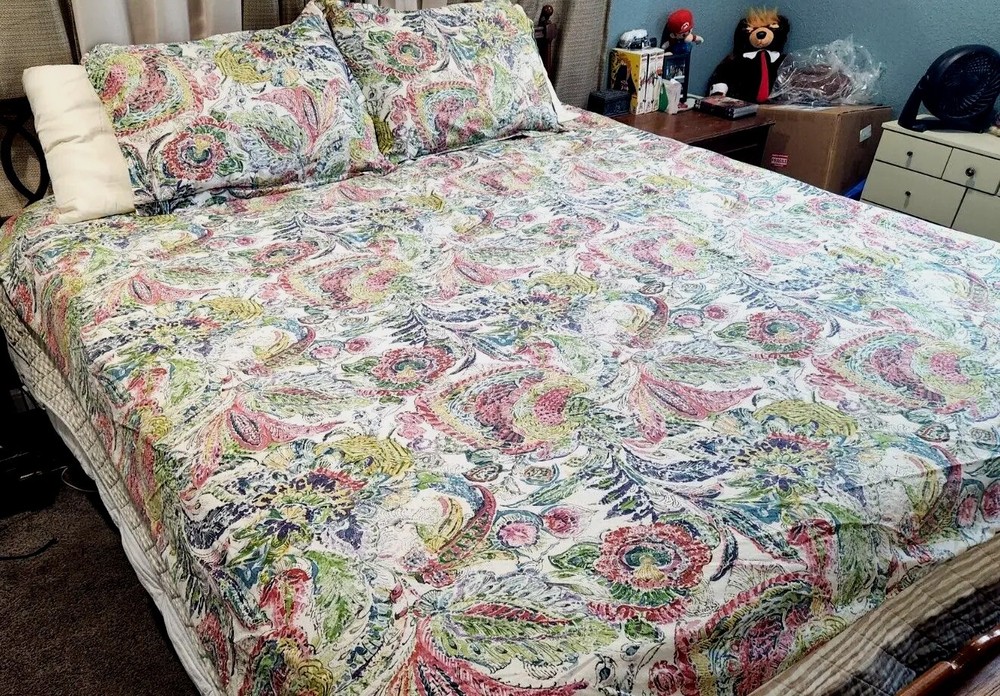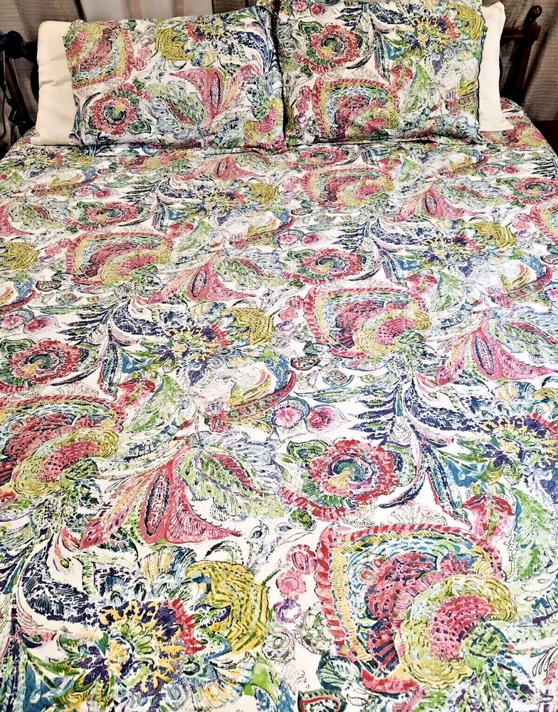 RARE DISCONTINUED 2013 Pottery Barn Mackenzie Floral Paisley Watercolor Full/Queen Duvet Set with 2 standard shams...