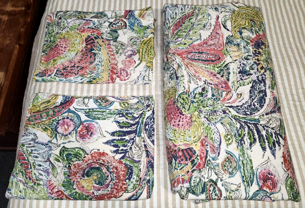 RARE DISCONTINUED 2013 Pottery Barn Mackenzie Floral Paisley Watercolor Full/Queen Duvet Set with 2 standard shams