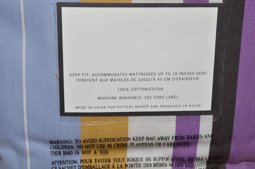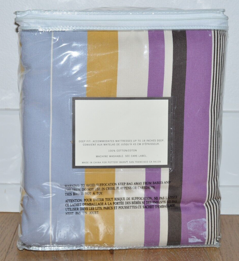 For sale is a Pottery Barn duvet cover! Madison Stripe. Multicolor with purple, blue, yellow, and beige. Fits queen and full size beds. New with tags! There is writing on the plastic packaging. Otherwise, it's mint! Please see photos for condition and measurements. Message with questions! Check out my other items! :) If you have a problem with your purchase, please contact me before opening a case or requesting a return. Thanks!