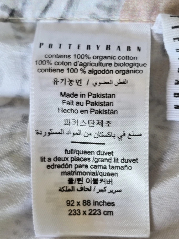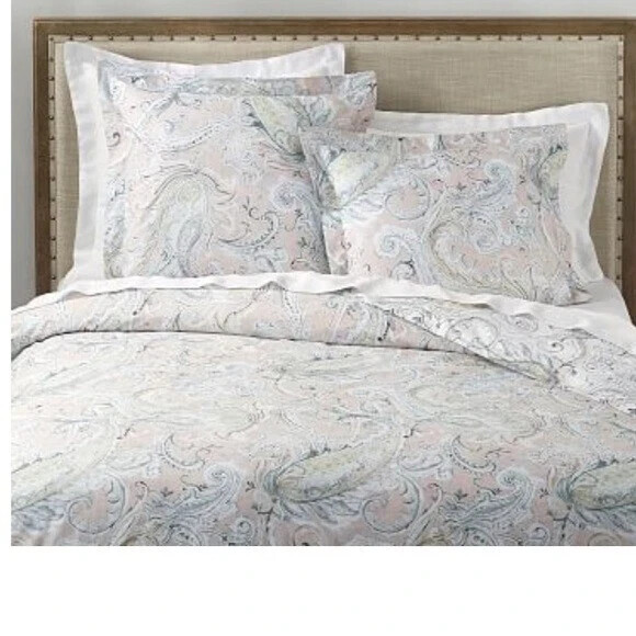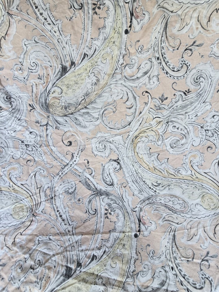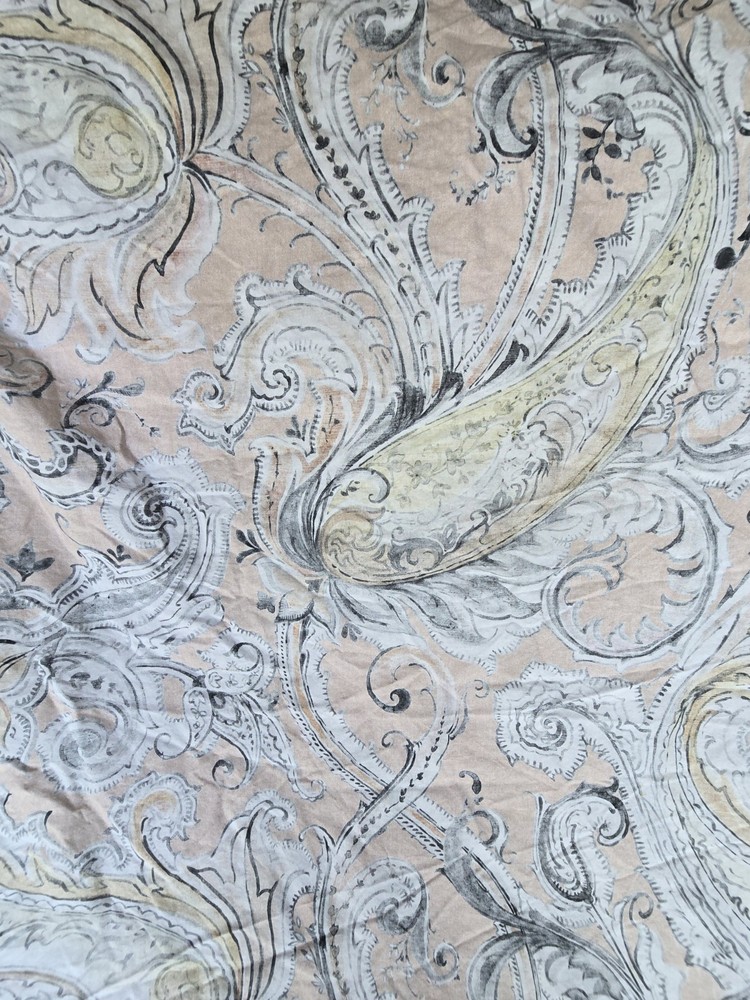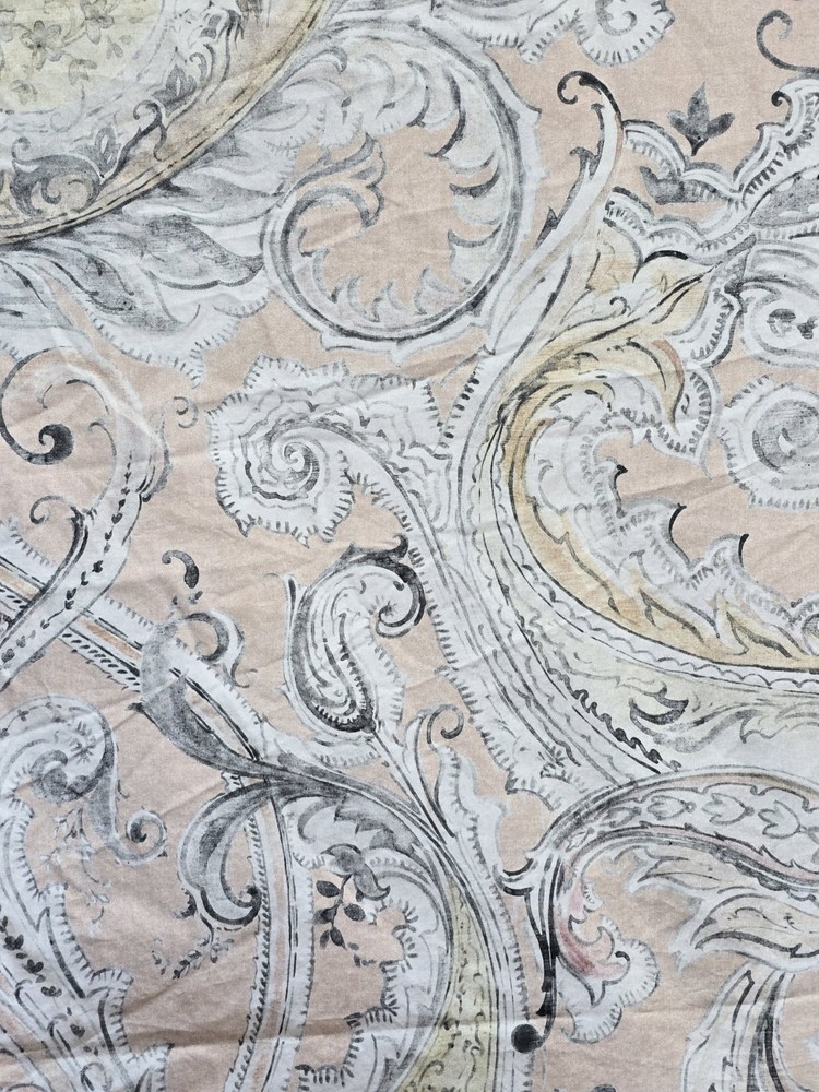 Pottery Barn duvet cover in the beautiful, neutral Mallorie Warm pattern. One side has a white/neutral background, then turn it over for a peachy background. Condition pre owned very good. Size Full/Queen Buttons closed 100% Organic cotton Please see the all photos for details. Final sale.