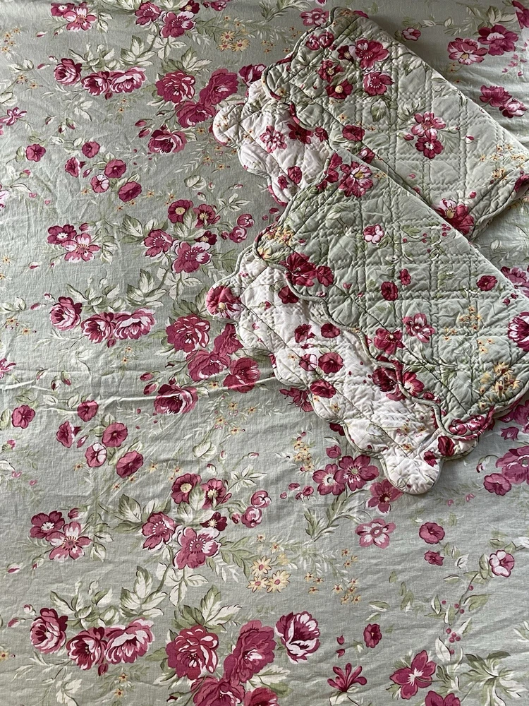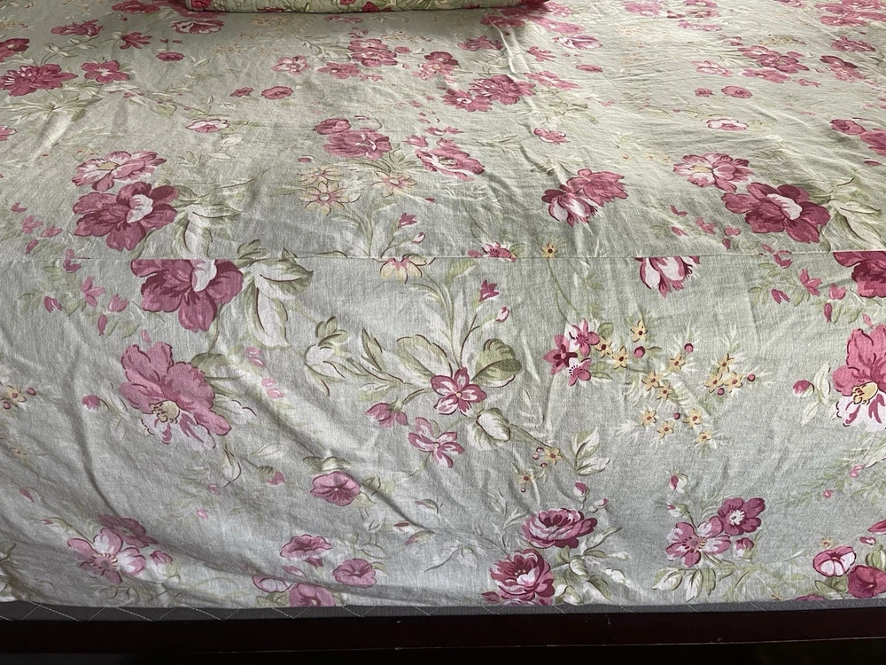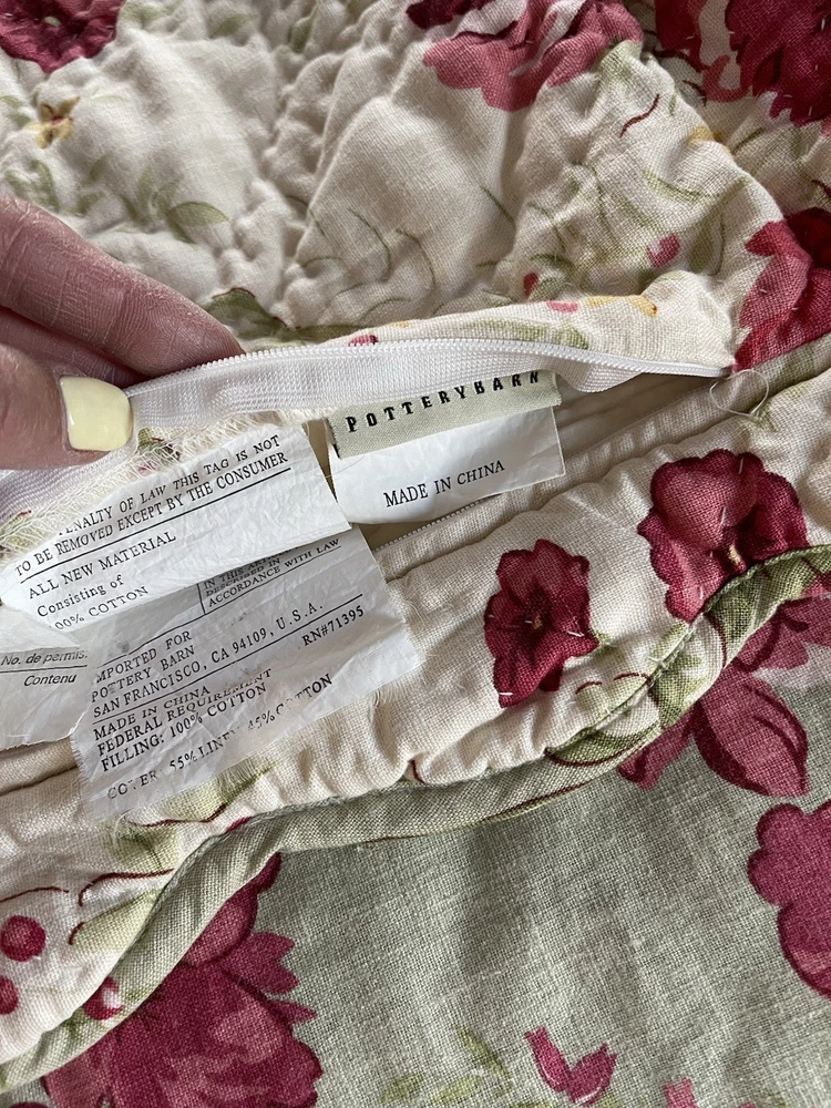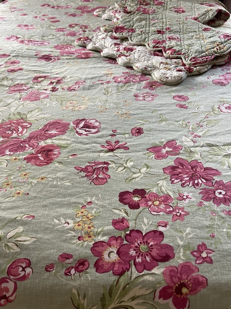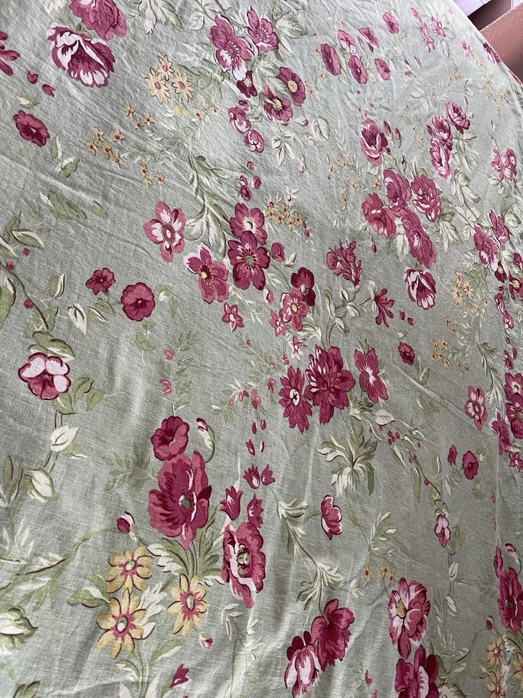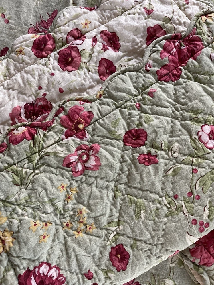 The Pottery Barn Manchester Rose Queen Duvet 2 Shams in green and pink floral is a three-piece duvet cover set perfect for adding a touch of nature to your bedroom decor. Made from a luxurious linen blend, this set features a beautiful floral pattern in vibrant colors. The set includes a duvet cover and shams, both adorned with buttons for easy closure. Ideal for a queen-sized bed, this set is sure to bring a charming and elegant look to any bedroom.