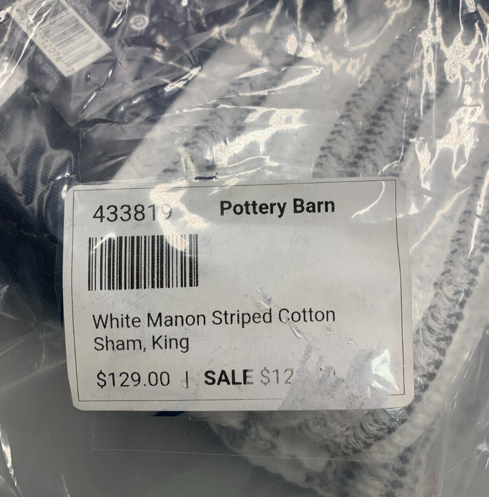 Pottery Barn Manon Striped Cotton Sham Item is brand new Auction includes: 1 sham PRODUCT DETAILS CONSTRUCTION: Expertly crafted of 100% cotton. Features zippered closure, insert not included. Yarn-dyed fiber has incredibly rich color that holds its vibrancy over time. OEKO-TEX® STANDARD 100: tested for 1000+ harmful substances to keep you and your family safe from chemicals common to textile manufacturing. Imported. Ships directly from vendor- White Sand. Standard: 20" w x 26" h Euro: 26" w x 26" h King : 20" w x 36" h CARE: Machine wash cold on gentle cycle. Only non-chlorine bleach when needed. Tumble dry low; remove promptly.