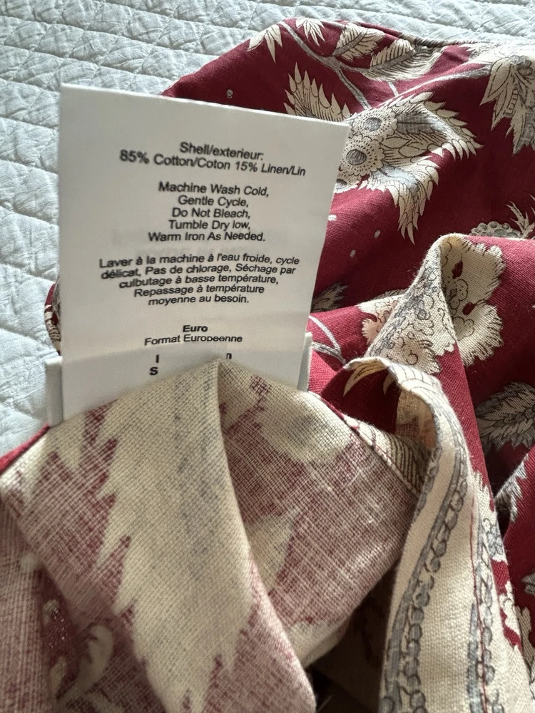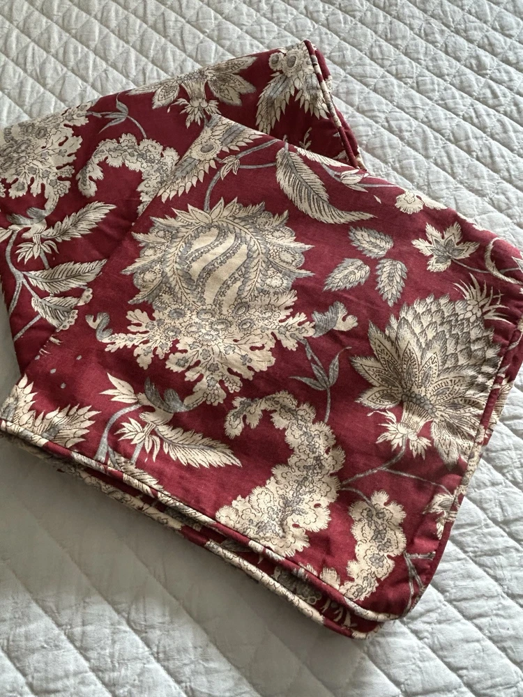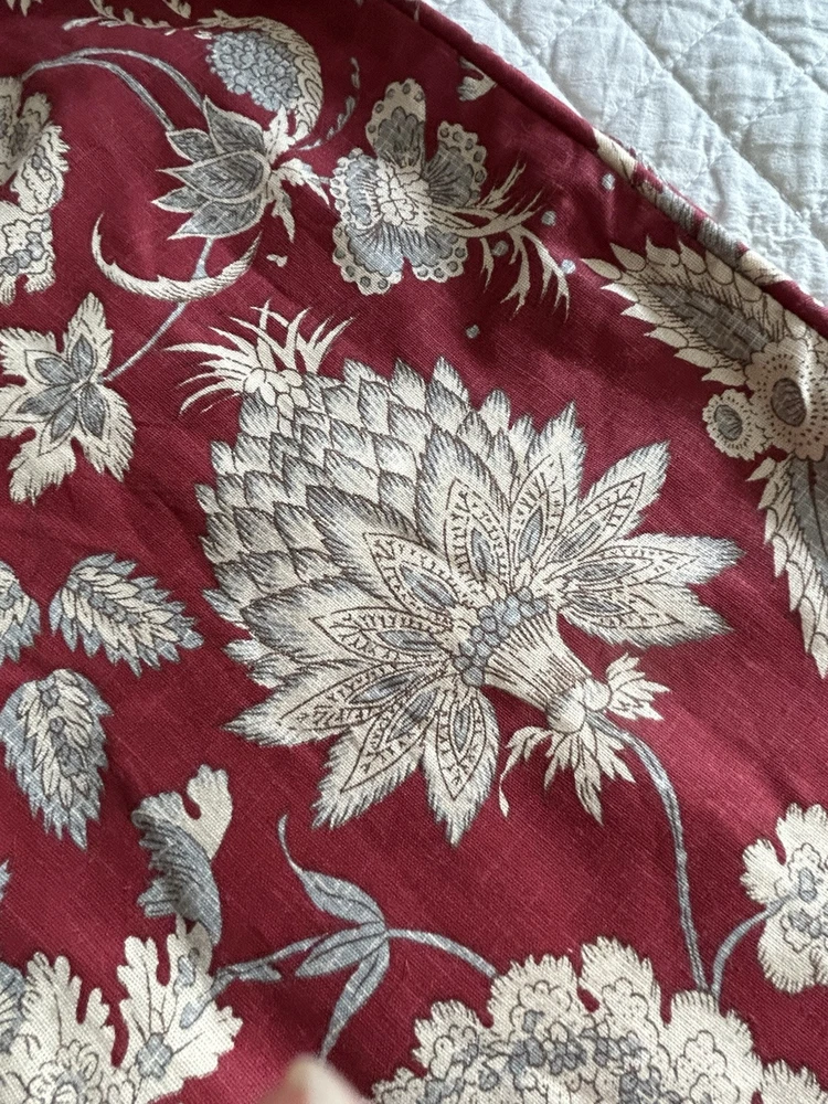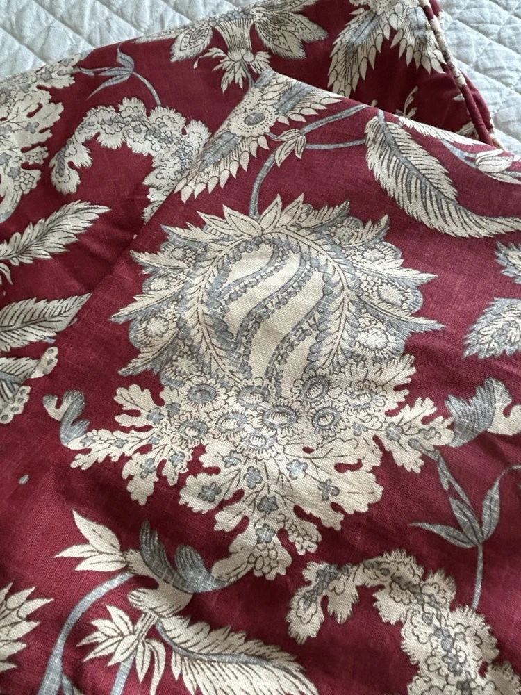 Absolutely love these Euro shams! The rich red floral print adds such a vibrant, luxurious touch to my bedroom. The linen-cotton blend is soft yet durable, and they arrived in excellent condition. The perfect statement pieces to elevate any decor—highly recommend!