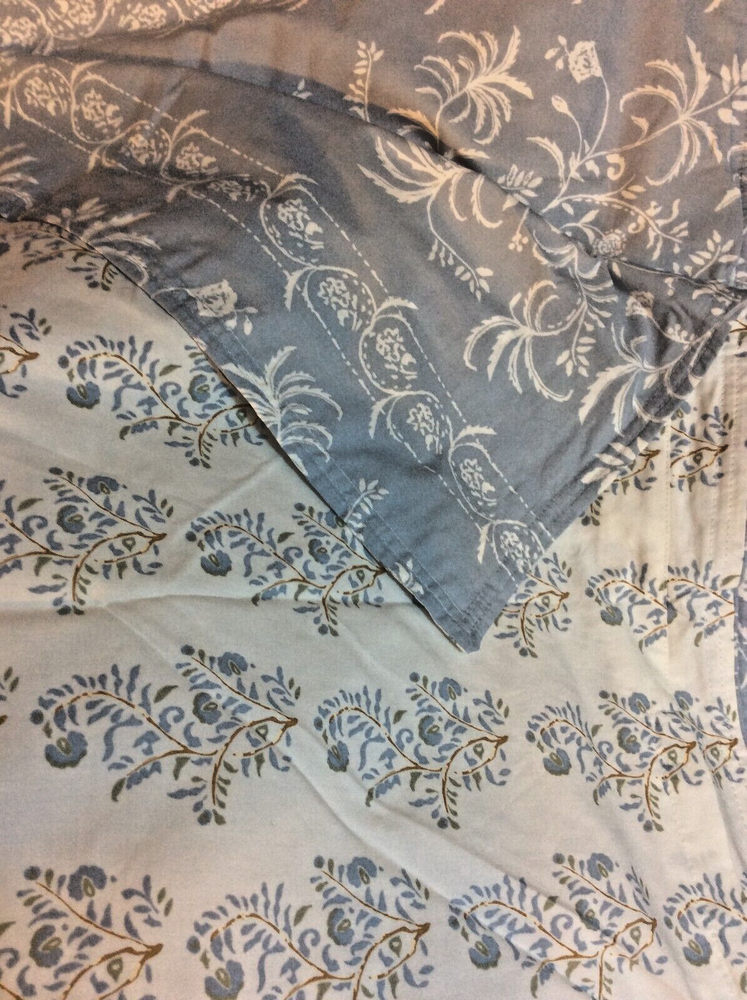 One Full/Queen Size Duvet Cover by Pottery Barn in the Marigold in the Julia Berolzheimer Collection Multi 100% Cotton Reversible Duvet features a hidden button closure with inner ties that keep insert in place New without Tags Pet Free / Smoke Free