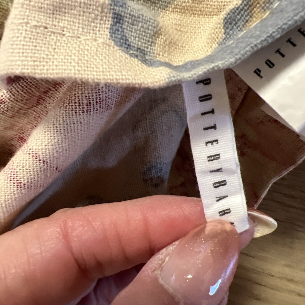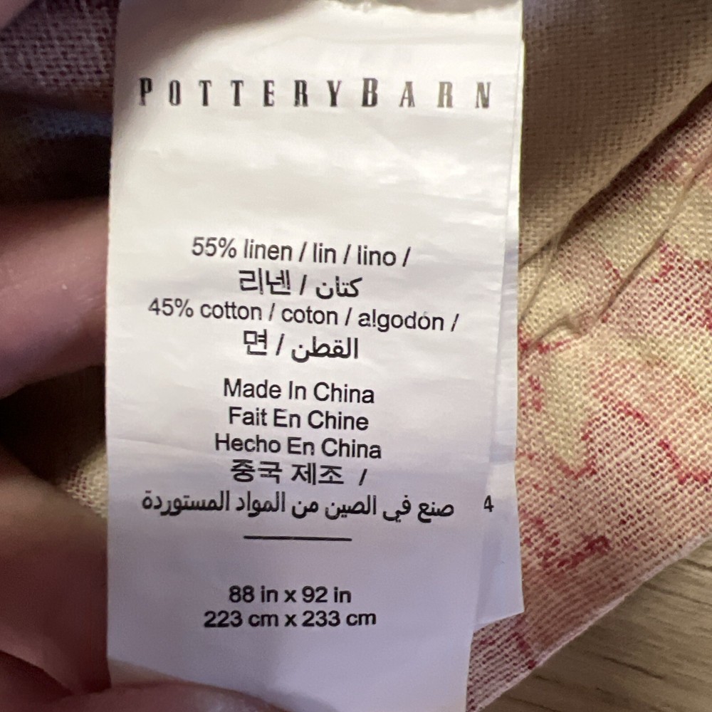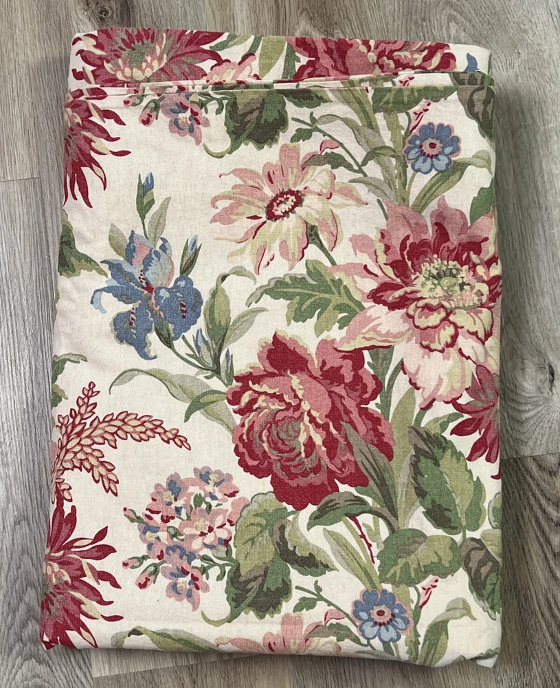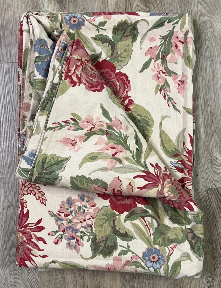 This Pottery Barn Marla Queen Duvet Cover features a Floral pattern on a Rectangular shape, crafted from a Linen Blend material. Measuring 88" in width and 92" in length, it is designed in a Cottage Country style with a French Country influence. The duvet cover is reversible with a zipper closure, showcasing a luxurious and nature-inspired theme of flowers. Made in Israel, this highly sought-after item is currently sold out.
