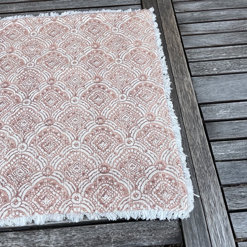 new as described. good appearance—exact color match to my chilewich sample. very well made. good value: no need to place a custom order now at a higher price point and longer lead time directly with chilewich for an entry mat. well packaged/quickly shipped. A+++ seller recommended.
