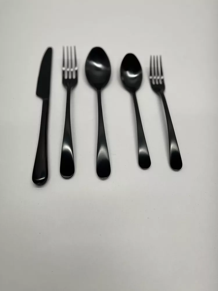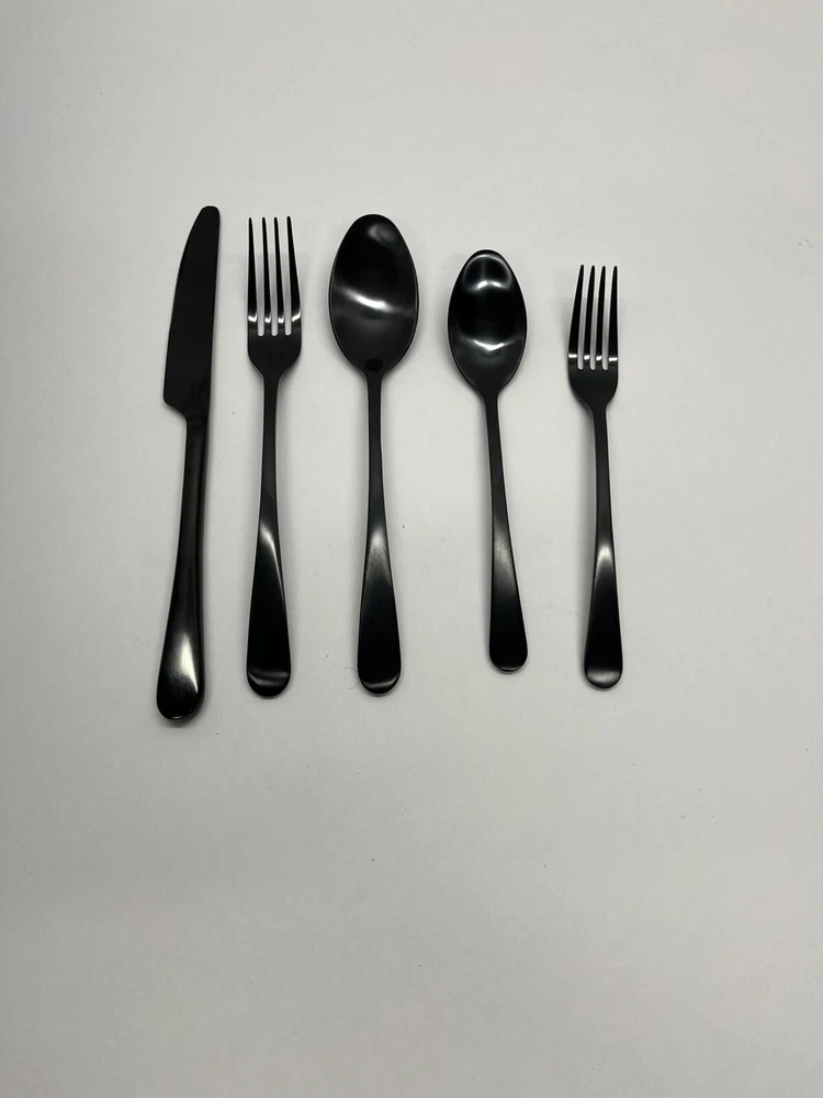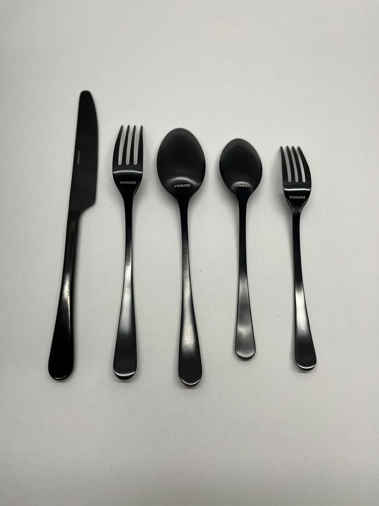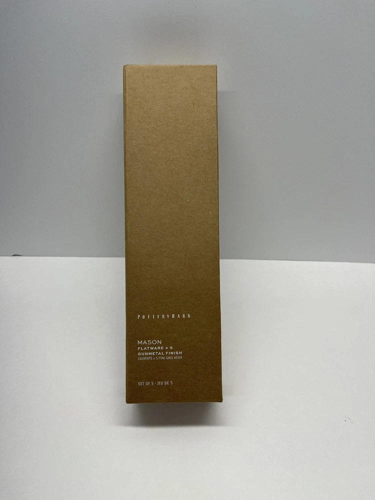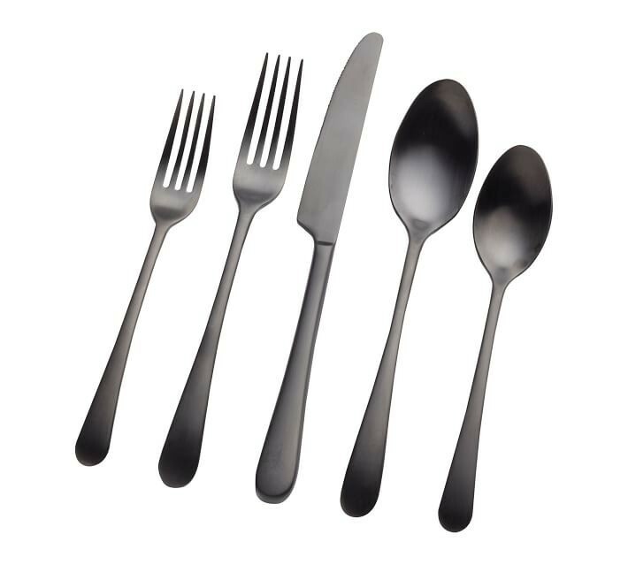 Currently selling for $50 per set on pottery barn! PRODUCT DETAILS Made of high-grade 18/0 stainless steel. Features a brushed finish in either gunmetal, champagne or stainless steel finish. Phthalate, BPA, lead and latex free. Dishwasher safe. Imported. Each 5 piece place setting includes: salad fork, dinner fork, knife, soup spoon and dessert spoon. Dinner Fork: 1" w x 7" l Salad Fork: 1" w x 8" l Soup Spoon: 1.25" w x 6.25" l Dessert Spoon: 1.5" w x 6.75" l Knife: 0.75" w x 9.5" l