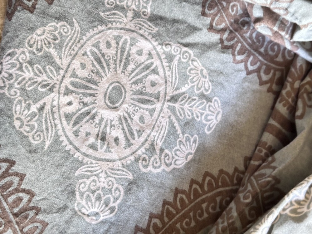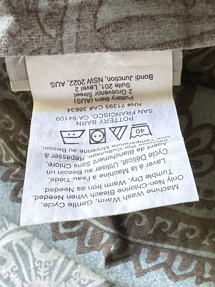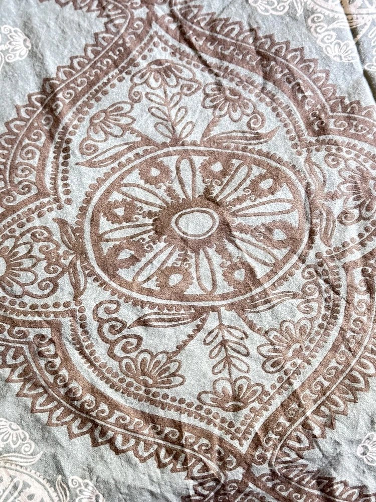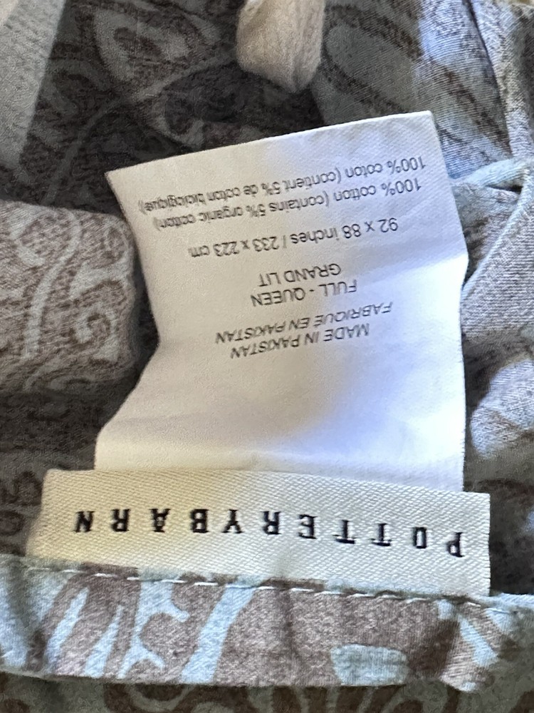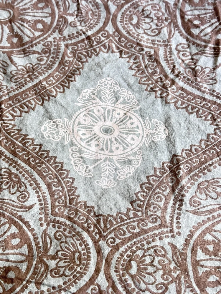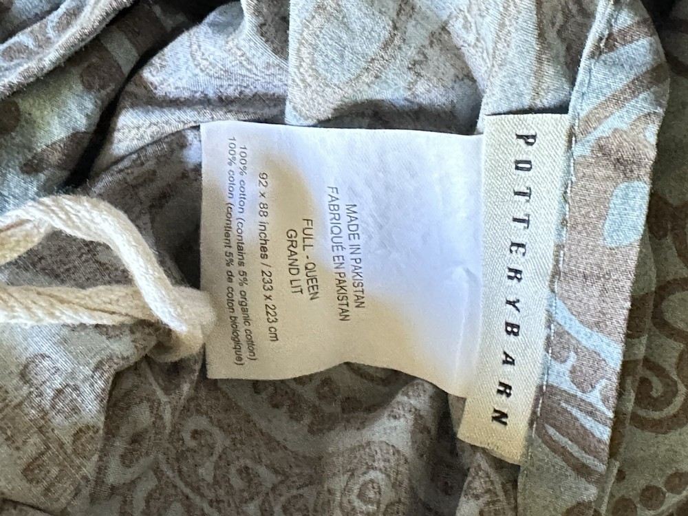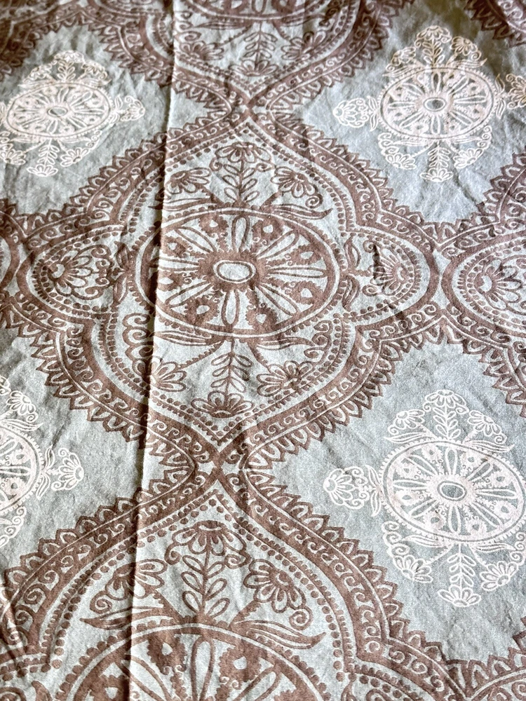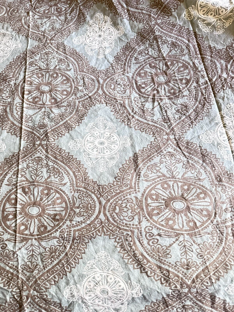Add a touch of contemporary style to your bedroom with this Pottery Barn Mason medallion duvet cover. The rectangular shape fits full/queen size beds measuring 92x88 inches. Made of 100% cotton with a thread count of 201-400, this duvet cover features a beautiful teal/brown medallion pattern that is sure to impress. Care instructions are easy with this machine washable duvet cover, which also includes a reversible feature for added convenience. The closure type is buttons and the item comes in a set of one piece. Perfect for teens, adults, and kids, this duvet cover is a great addition to any bedroom decor. Very good pre-owned condition. Please see attached pictures for more details. Shipped using priority mail.