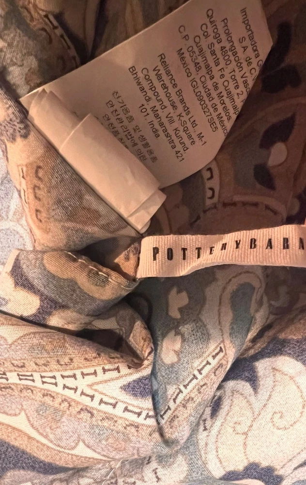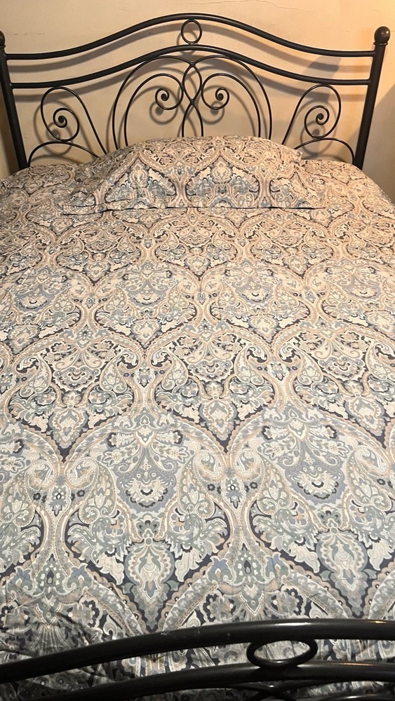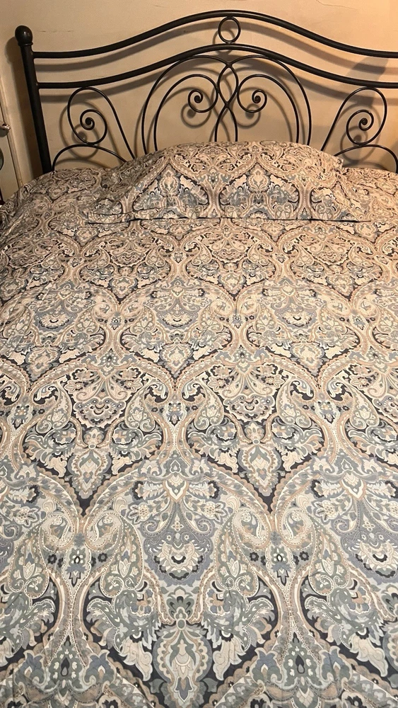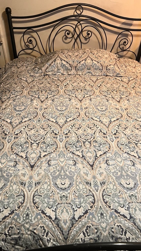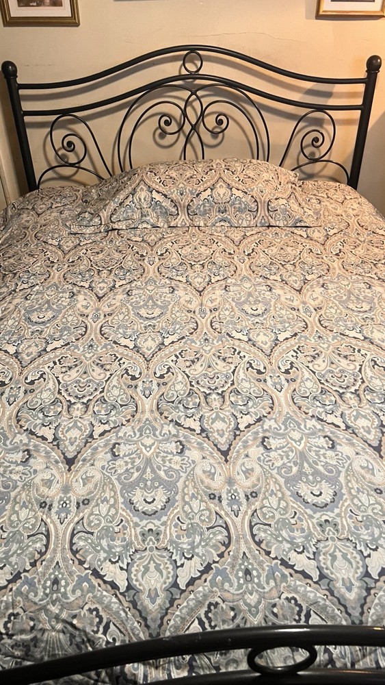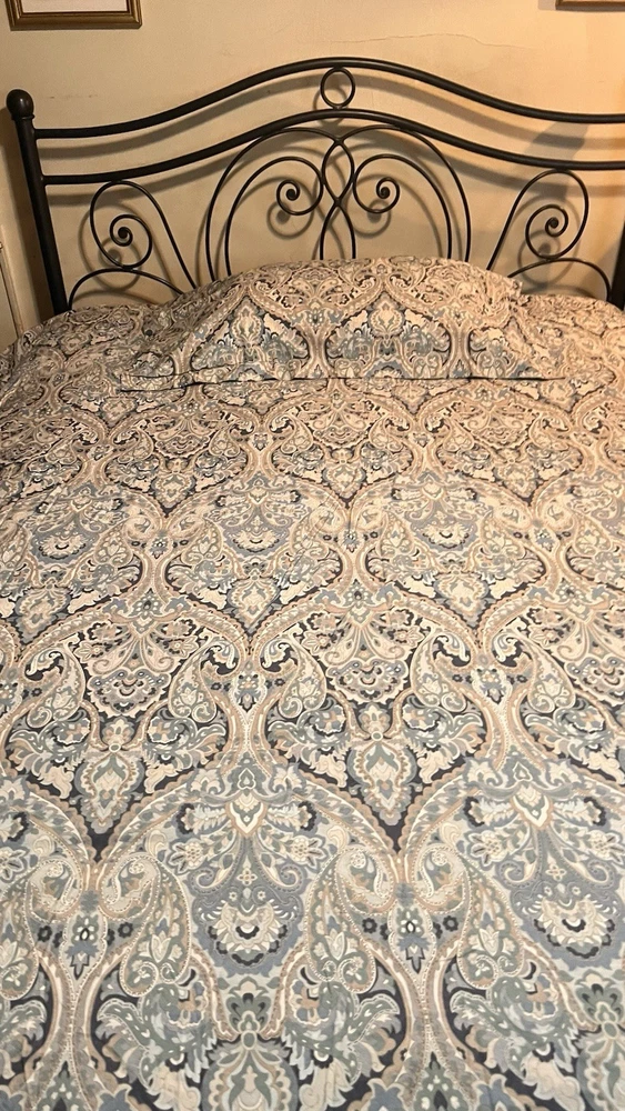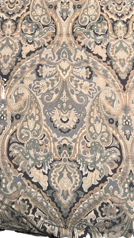 Add a touch of timeless elegance to your bedroom with this Pottery Barn McKenna King Duvet Cover and matching King-size sham. The intricate paisley pattern features a rich, multicolor blend of blue-teal, gray, off-white, and gold tones, creating a warm and sophisticated look that complements both classic and transitional decor styles. Crafted from 100% organic cotton, this set is soft, breathable, and machine washable for easy care. The duvet cover features a button closure for a clean, tailored finish and a rectangular shape that fits King-size beds beautifully. Product Features: • Brand: Pottery Barn • Model: McKenna • Size: King • Includes: 1 King Duvet Cover + 1 King Sham • Material: 100% Organic Cotton • Color: Multicolor (Blue-Teal, Gray, Off-White, Gold Paisley) • Closure Type: Button • Sham Dimensions: 36” W x 20” L • Style: Transitional Condition: Both pieces are in nice pre-owned condition, with gentle wear from previous washings. As they’ve been in storage, a fresh cleaning is recommended before use. Please Note: • Colors may vary slightly due to lighting or screen settings. • All sales are final. Feel free to reach out with any questions before purchasing. ✅ Buy with confidence! I have over 20 years of eBay experience and a 100% positive feedback rating.