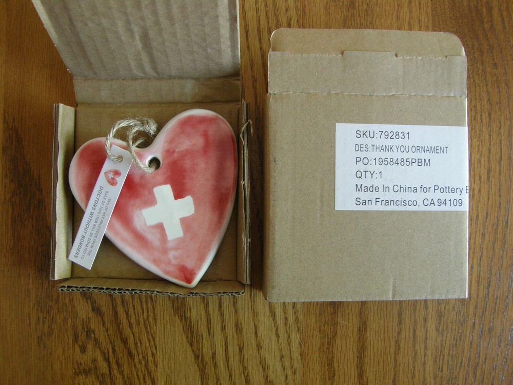 Pottery Barn Medical, Dr, Nurse, EMT Thank You Heart Ornament - Christmas - New This listing is for one ornament Show you thanks to someone or a group in the medical field with this ornament. This ornament can be given year round. Attach to any thank you gift or it is perfect on it's own to show gratitude. Ornament comes in plain brown box. Made of stoneware with a glaze finish. Hangs from a string. Overall: 4" wide x 0.5" deep x 4" high Clean with a soft dry cloth. Please check out my other listings for Pottery Barn Ornaments. I always combine shipping and refund any shipping charges overestimated by $2 or more.