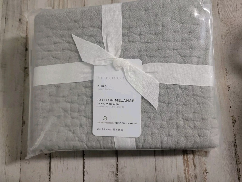 The Pottery Barn Melange Handcrafted Cotton Quilted EURO Sham in Gray is a luxurious and stylish addition to any bedroom. Made with high-quality cotton and featuring a cozy quilted design, this sham adds a touch of elegance and comfort to your bedding ensemble. Perfect for adding a pop of color and texture to your room, this sham is sure to elevate your decor and create a warm and inviting atmosphere.