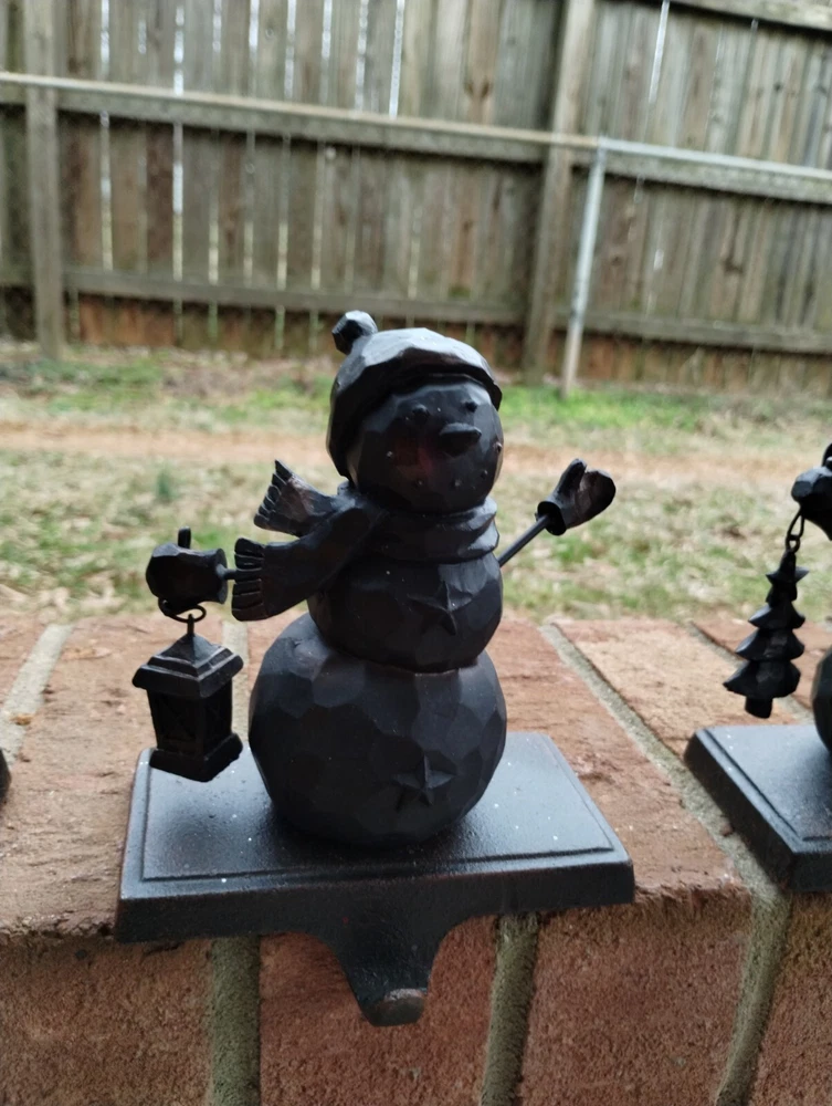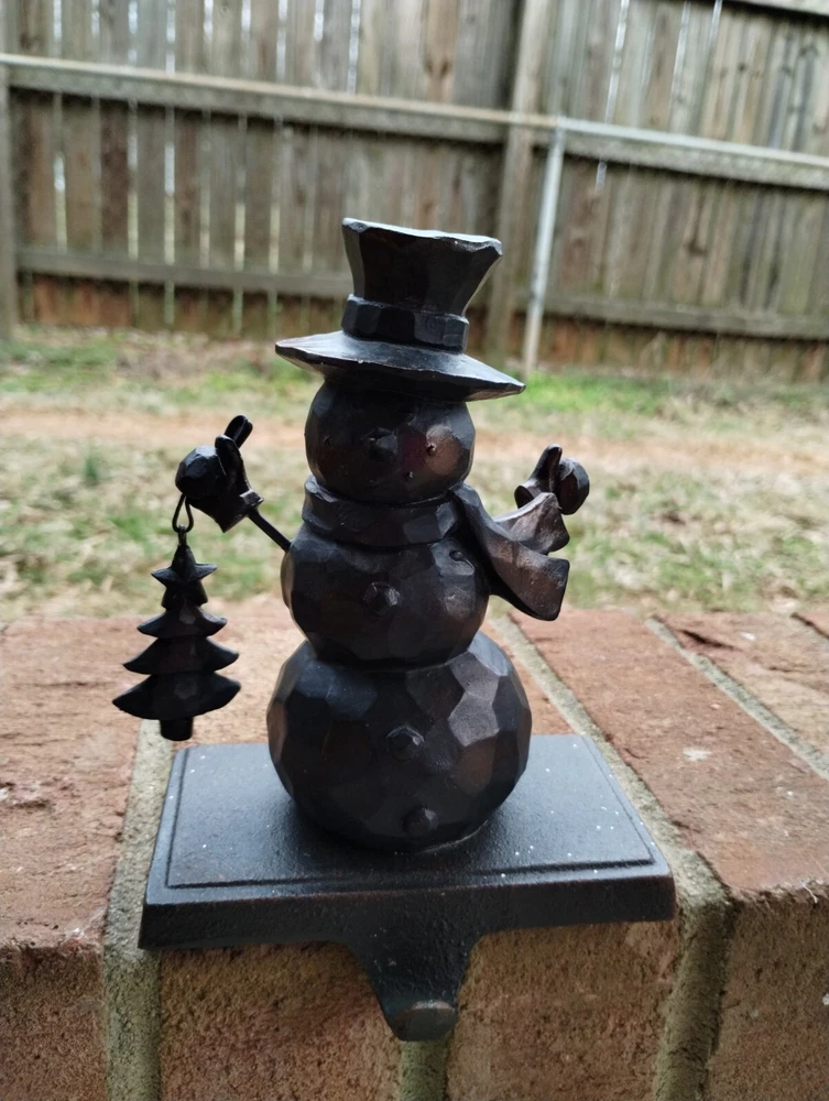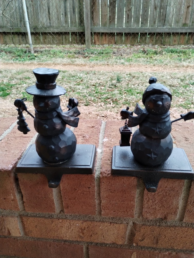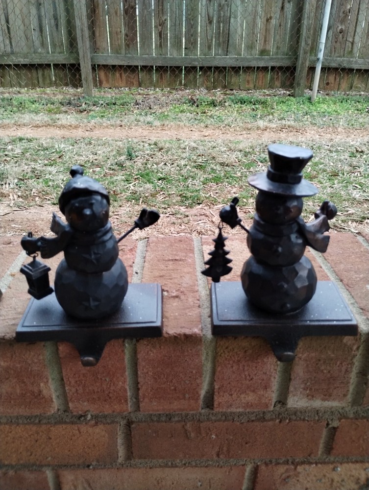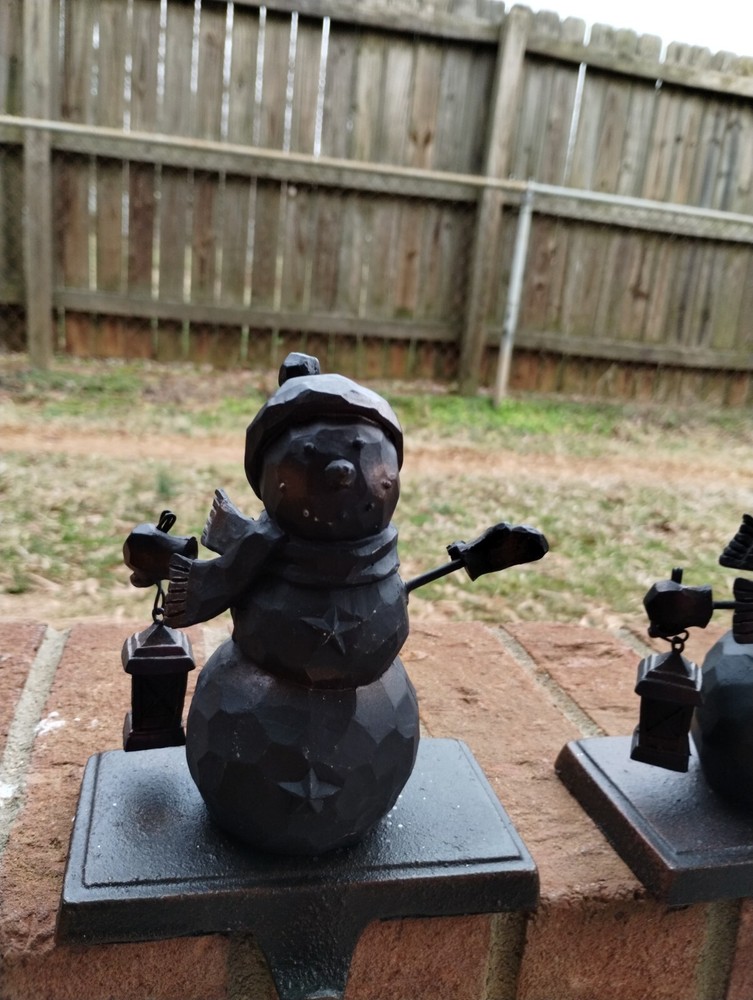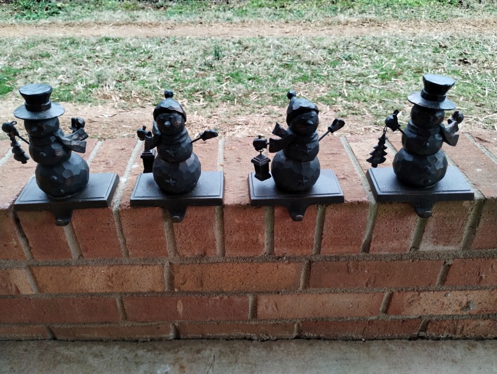 Pottery Barn Metal Snowman Christmas Stocking Hangers Bronze Brown Set Of 4. Condition is Used. Shipped with USPS Ground Advantage....