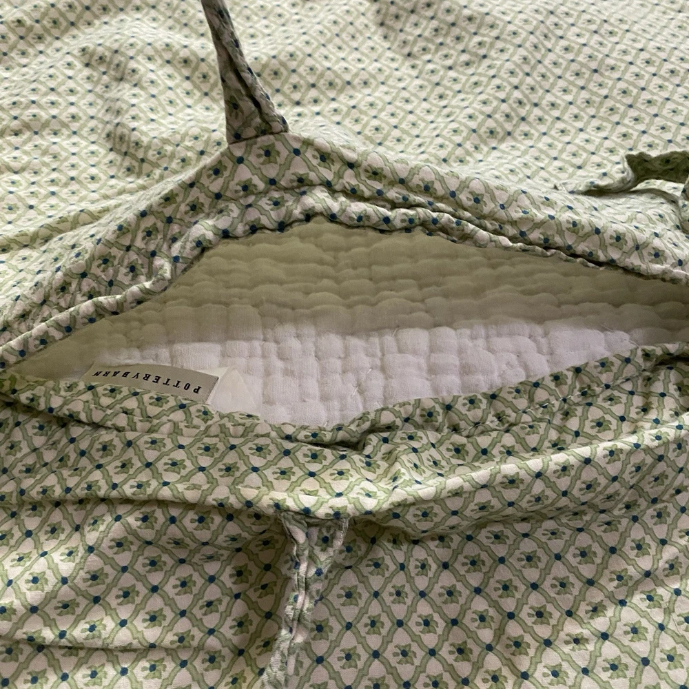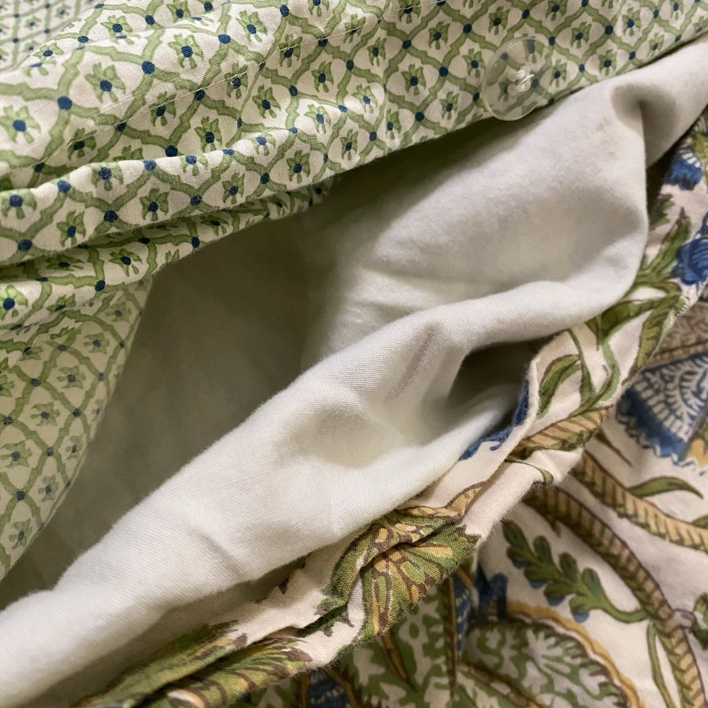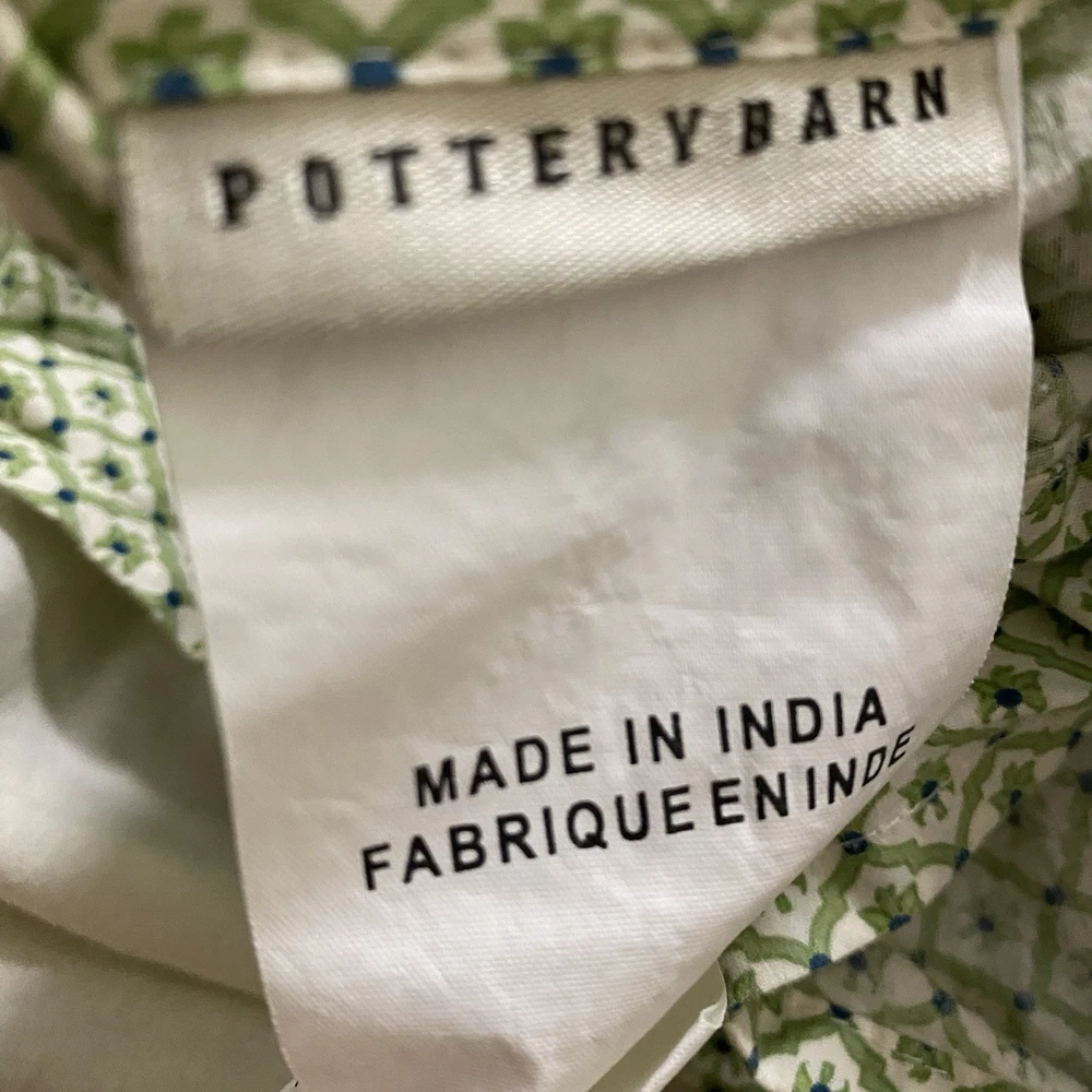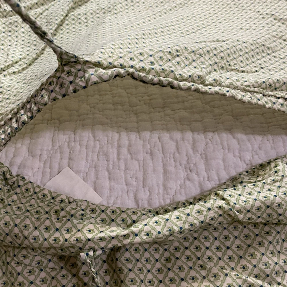 Pottery Barn Mia Floral Reversible Blue Green King Size Duvet Cover + 1 Standard Sham and 1 Euro Sham duvet has a button closure and both shams tie closed in the back, all reversible Please let me know if you have any questions or need any additional photos