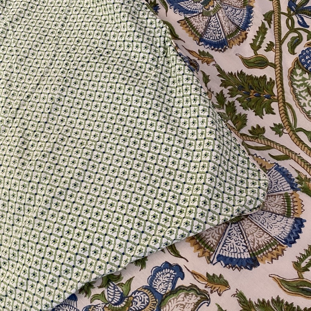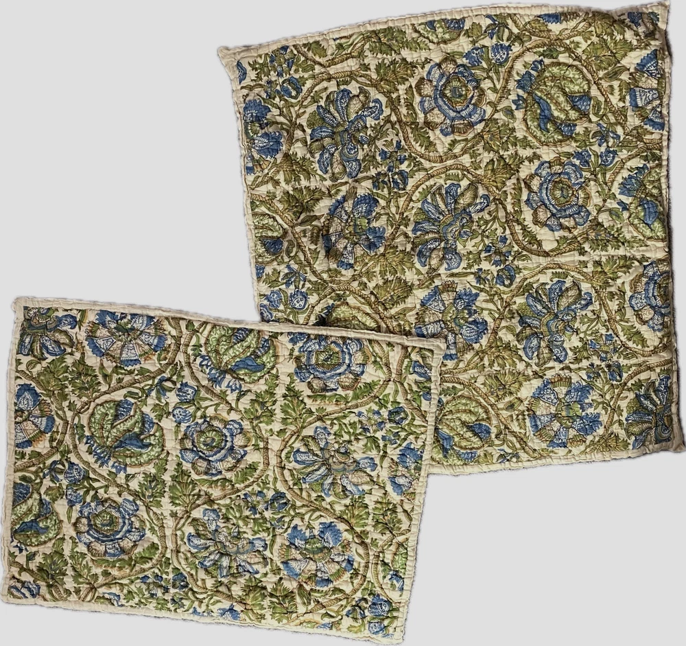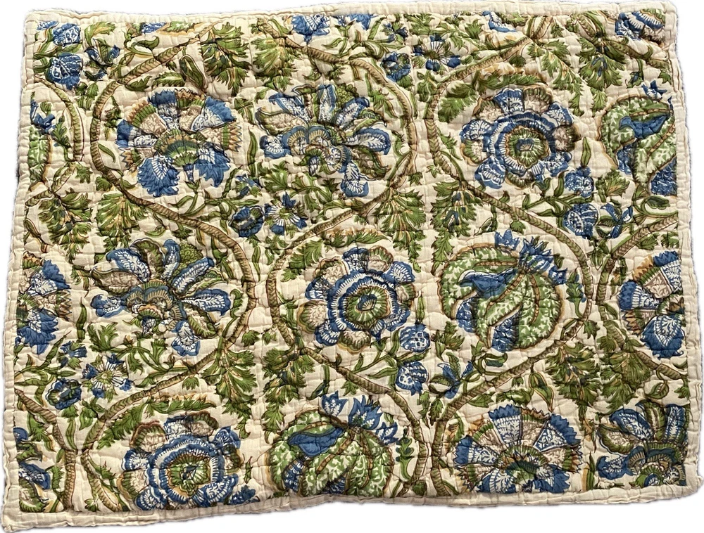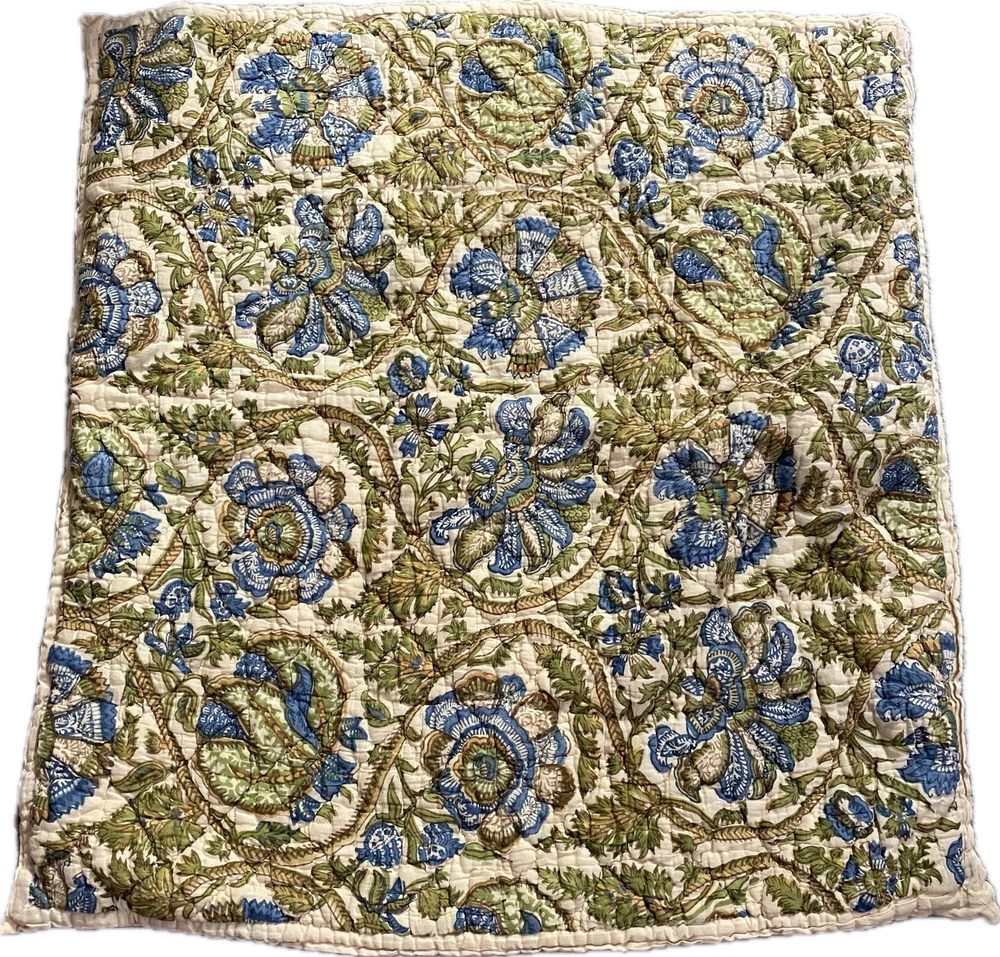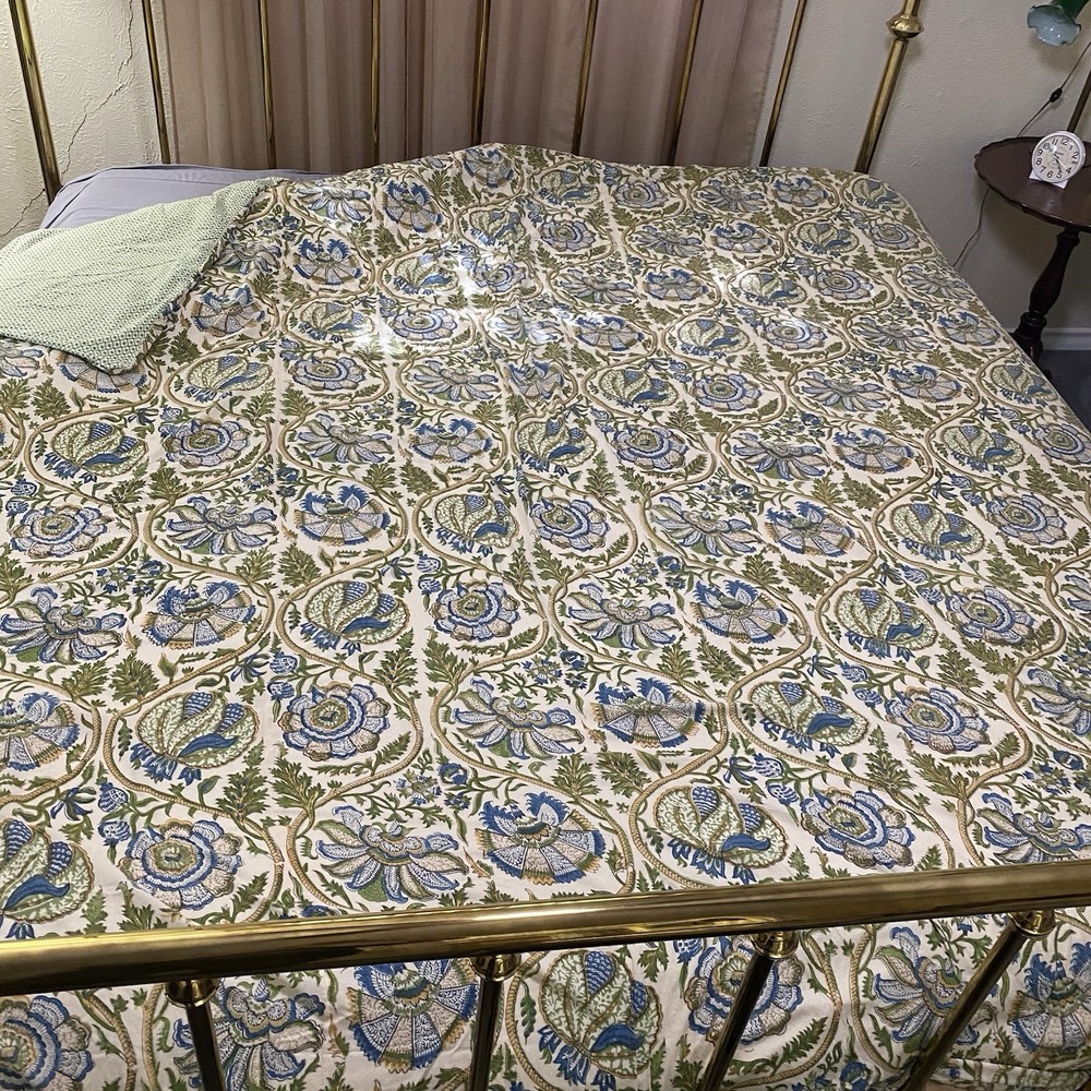 Pottery Barn Mia Floral Reversible Blue Green King Size Duvet Cover + 1 Standard Sham and 1 Euro Sham duvet has a button closure and both shams tie closed in the back, all reversible Please let me know if you have any questions or need any additional photos