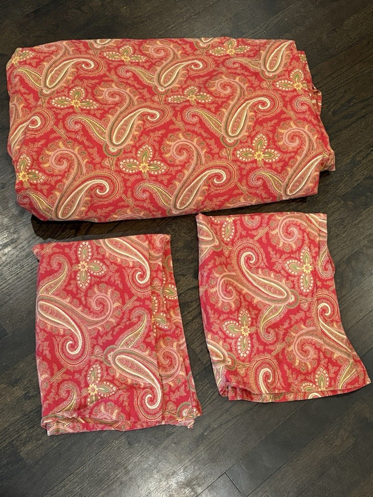 Pottery Barn Mira Annabel paisley king duvet cover and 2 standard pillow shams. In excellent condition. Minimal wash wear and no shrinkage. Button closure. Thanks for looking:)