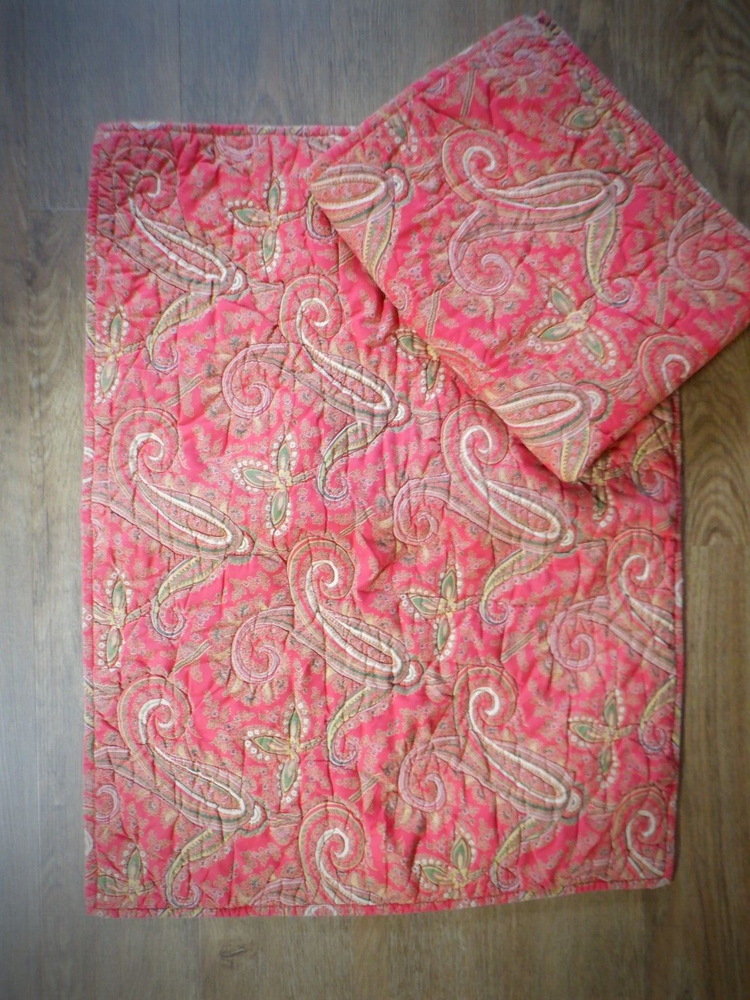 Pottery Barn Mira Anibel Quilted Red Paisley Standard Pillow Shams (2) Pre-Owned: very good condition Dimensions: 26" x 19.5" Red Paisley with green and yellow accents. Tie Closures. The shams have been washed and ironed. Terms & Conditions: General: If you have questions, please email us and we will respond as quickly as possible. We try to describe our items as best we can, describing all imperfections or issues that we notice. We are not experts on all items that we sell, so please look over the pictures closely and contact us with questions before you bid. Items are not returnable unless they are not as described. Payment: Payment is expected within 2 days unless prior arrangements are made with the seller. Shipping Charges: Shipping costs are based on weight and ship to location. We accept PayPal. We do not accept personal checks or credit card payments. International Buyers must wait for an invoice before making payment and be sure to email with questions before you bid. Multiple Purchases: If you have purchased multiple items, we will combine shipments to save you money where we can. If you need a quote on multiple items, please contact us with your zip code and State. Feedback: PLEASE LEAVE FEEDBACK so we know you are happy with your purchase. It is very important to us that we receive a good rating from our buyers, so if there are any concerns regarding a transaction, please contact us before leaving feedback so we can resolve them. Returns: Refunds are given only if item is not as described. They are not given for buyer’s remorse. Return postage is paid by the buyer. Buyer must respond within 5 days of receiving item if there is a problem. I find my merchandise at estate/garage sales, thrift shops, boutiques, etc. I cannot vouch they come from smoke or pet free homes because before I purchase the items, I don't know the conditions. My home is smoke and pet free.