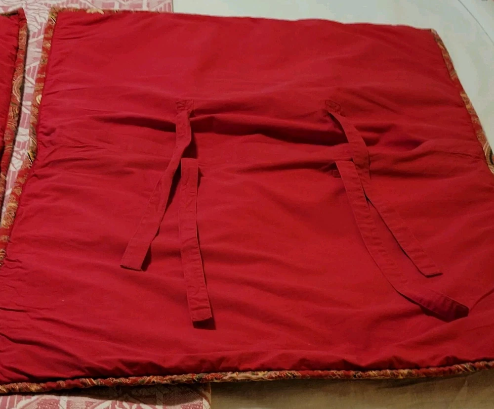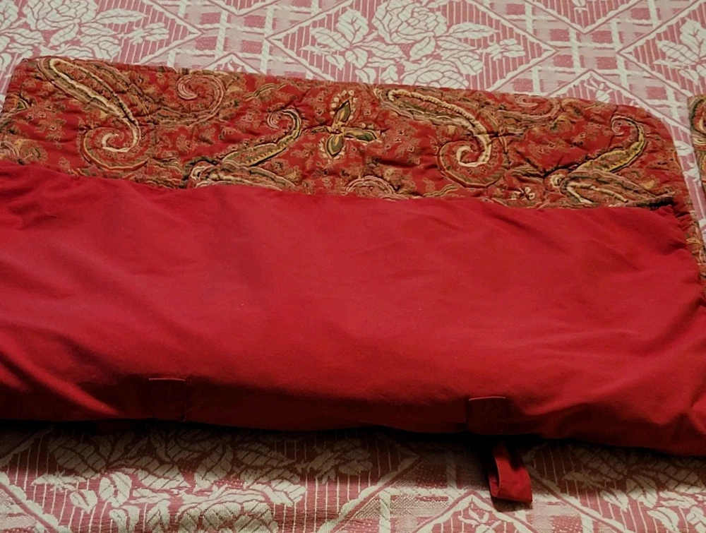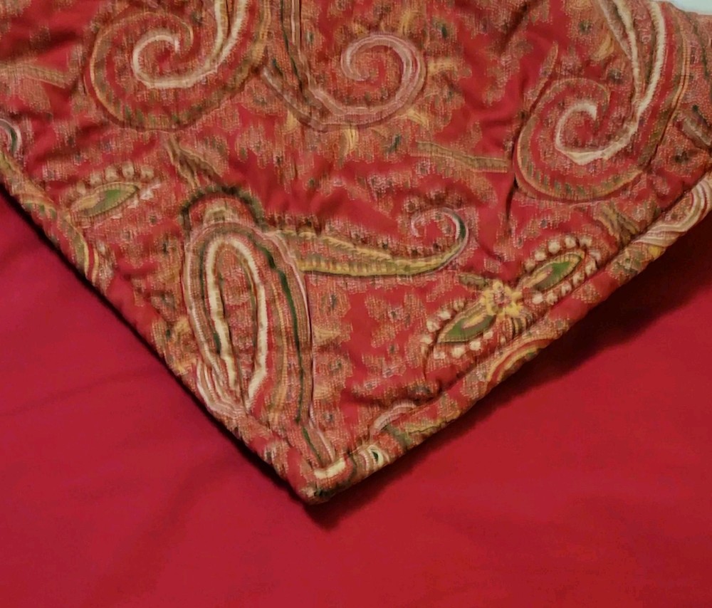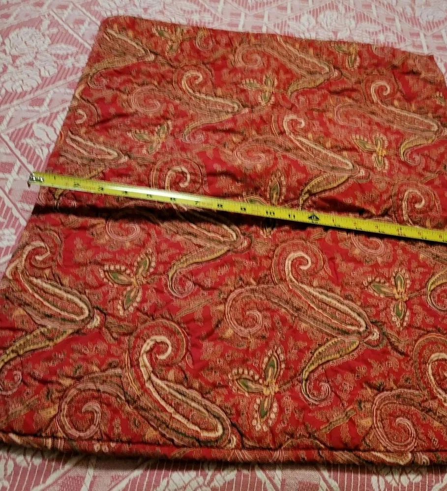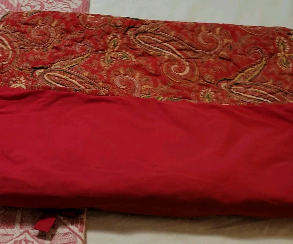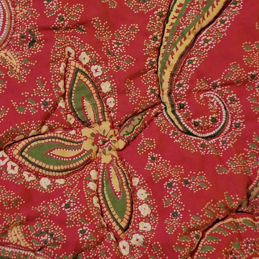 Pottery Barn Mira Anibel Quilted Red Paisley Standard Pillow Shams (2) 20x26" Beautiful pair of Pottery Barn Mira Anibel quilted red paisley standard pillow shams. These feature a gorgeous jeweled red background with yellow, green paisley. They have 2 ribbon tie closures and are 100% cotton. These have a very rich, Boho look and would be a great addition to a collection. Shams are in preowned condition & have been freshly washed & ironed. ***Tags show wear.***Please enlarge pics and ask any questions you may have before purchasing.
