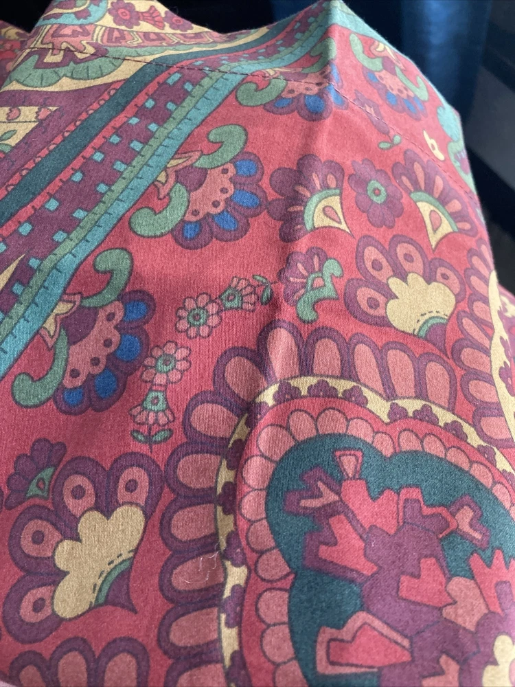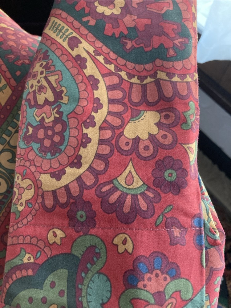 New unused red paisley full queen duvet still has folds from packaging. Very soft and smooth fabric. Has one standard sham....