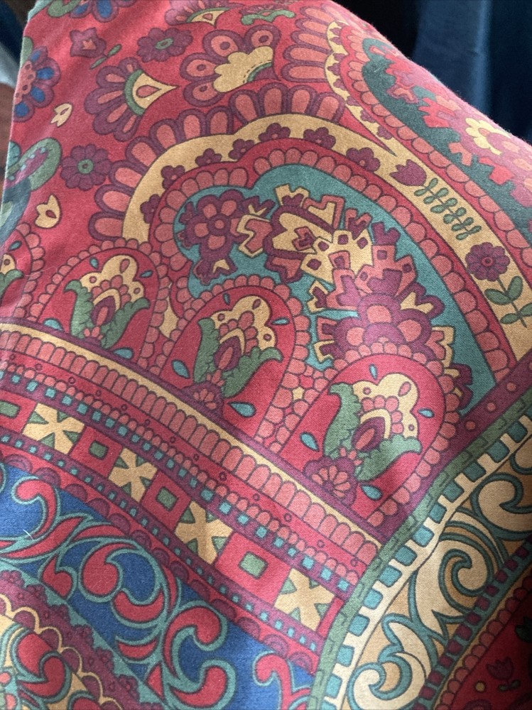 New unused red paisley full queen duvet still has folds from packaging. Very soft and smooth fabric. Has one standard sham.