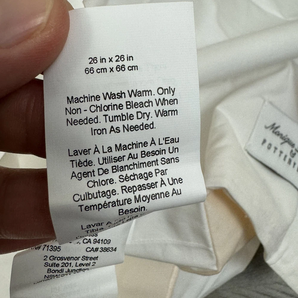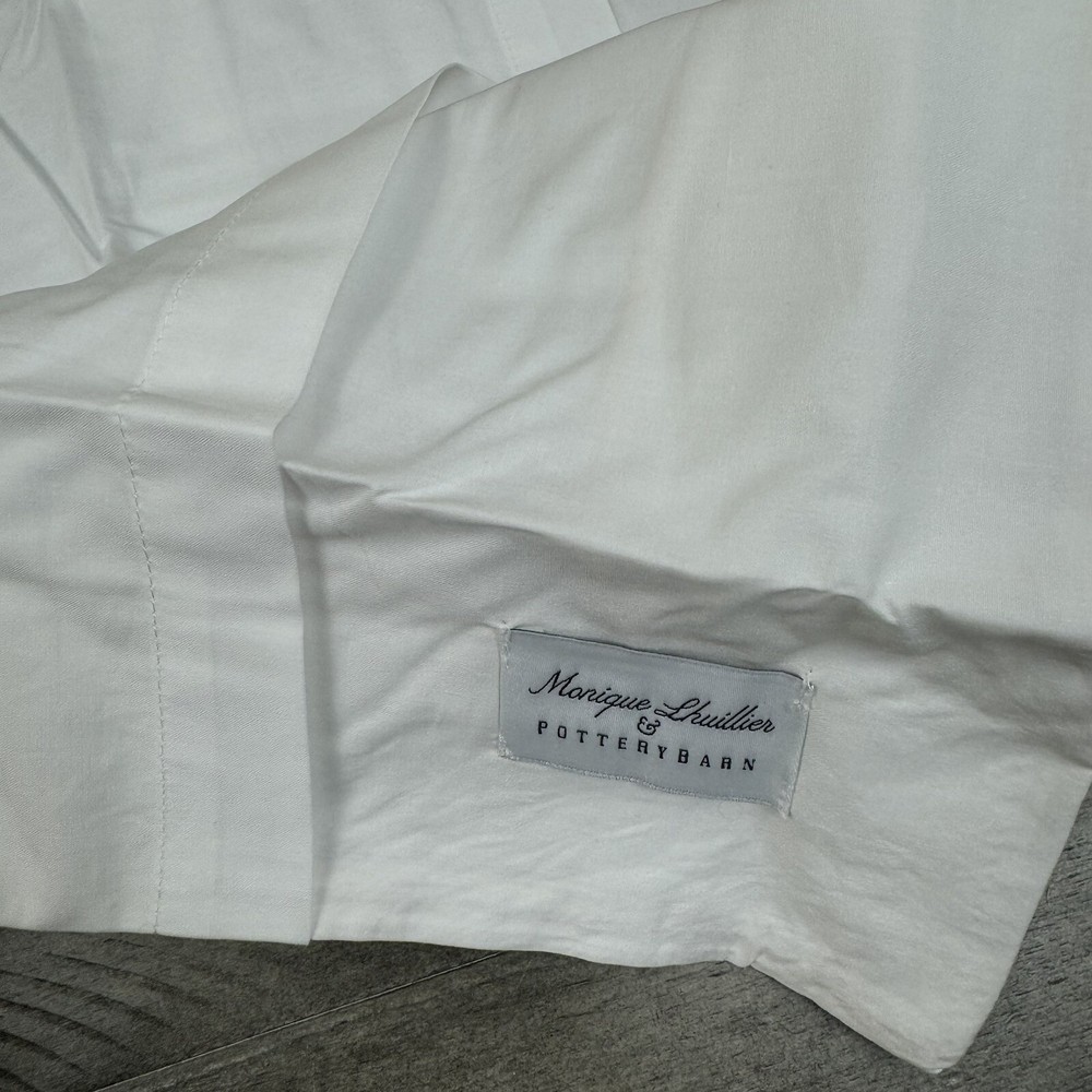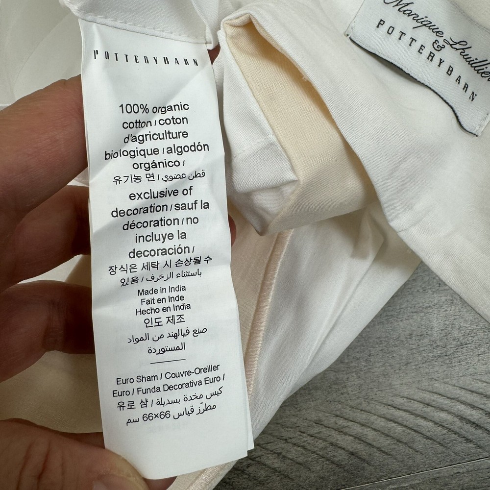 Pottery Barn Monique Lhuillier Daphne Percale Euro Pillow Sham Shell Flaw Read New without tags item / open box - item ships without manufacturer packaging Please note, there is a small pull on one side of the sham/right on the trim part as pictured Dimensions: 26” sq This listing is for one pillow sham
