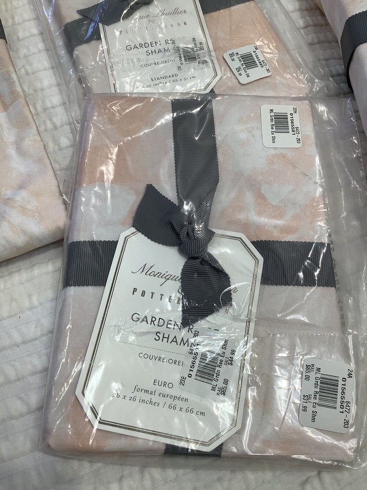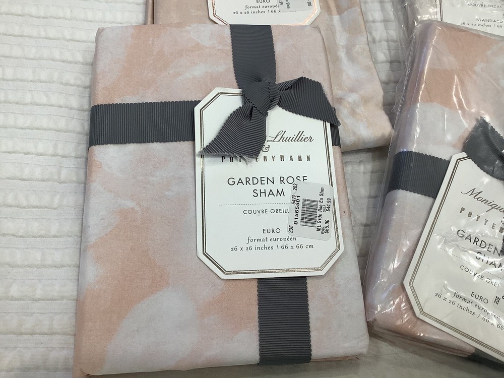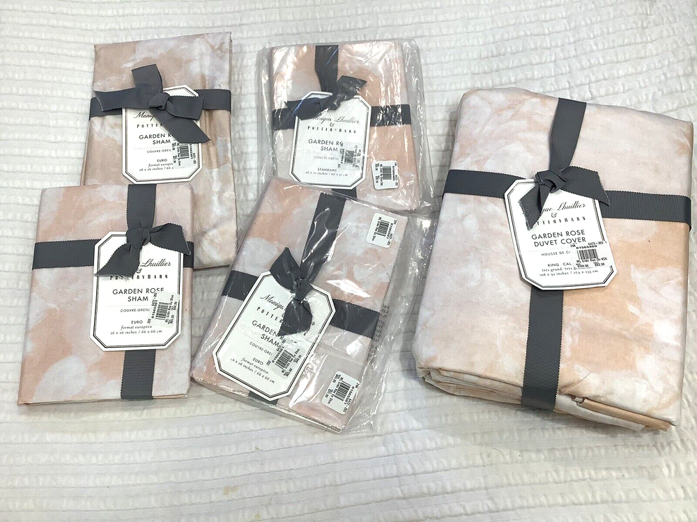 Monique Lhuillier & Pottery Barn Garden Rose Duvet Cover and Shams 4 of the Shams are Euro size 26x26~ (Pottery Barn Price is $45 on sale~ original price was $65 each) 1 Sham is Standard Size 26x20 All are Brand new~ please refer to photos for details Not allowing Returns on this as only way I would consider if they had not been unwrapped which isn’t going to happen. So make sure you are confident in your choice to purchase Photos only show 4 shams instead of 5 but do have 5 Will ship within 24 hours of payment