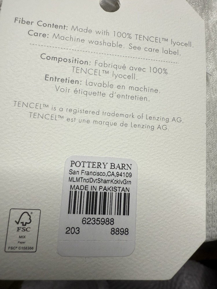 The Pottery Barn Monique Lhuillier Olive Duvet Cover in King/Cal. King size is a luxurious addition to any bedroom. Made of 100% tencel, this duvet cover features a reversible design in a French Country style, perfect for teens and adults alike. The beautiful olive pattern on a white and green background brings a touch of nature and luxury to the room. With a zip closure and STANDARD 100 by OEKO-TEX certification, this duvet cover offers comfort, style, and convenience with its machine washable and tumble dry care instructions.