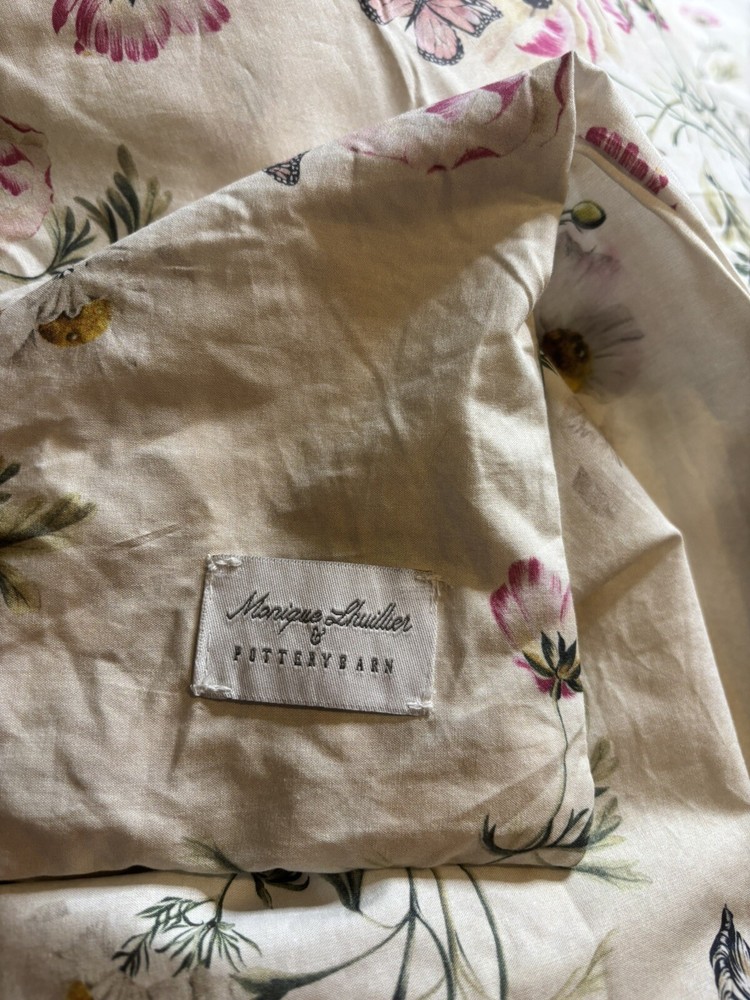 Pottery Barn Monique Lhuillier Tuileries Percale Duvet Cover Queen & 1 standard sham in Excellent Condition!! This is an open box item without any original packaging nor tags No spots/ stains Smoke & pet free