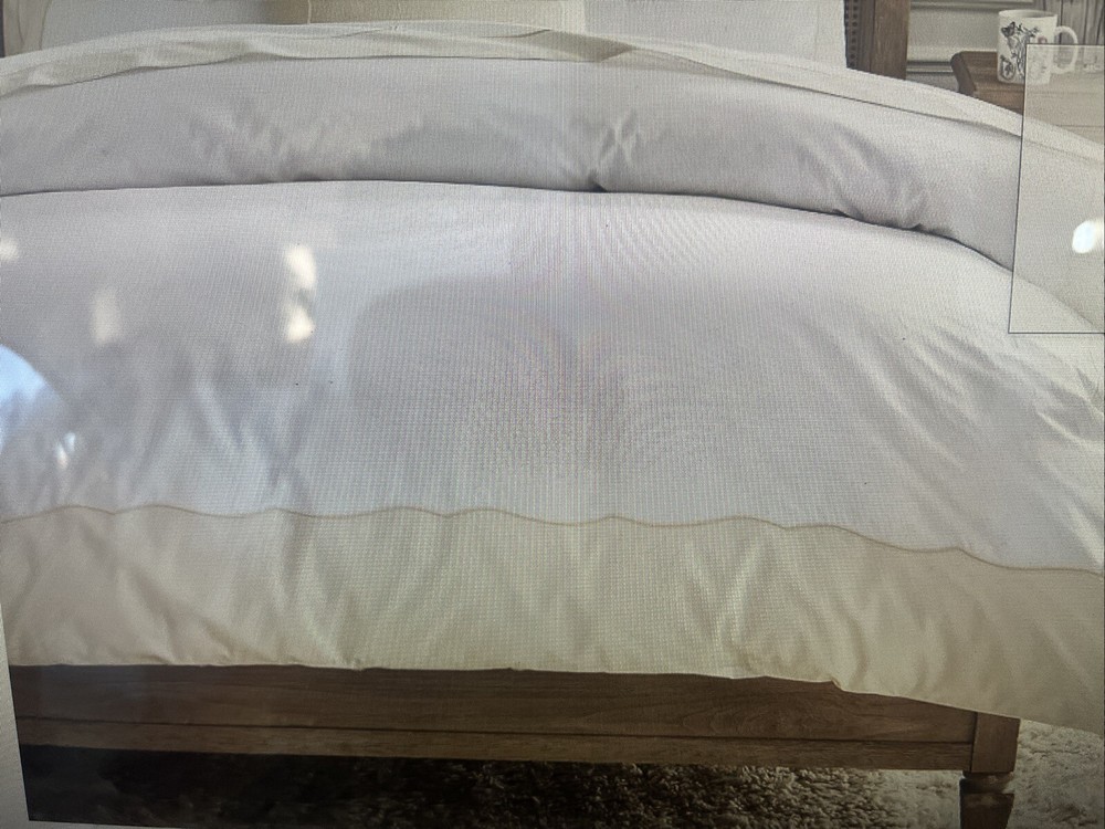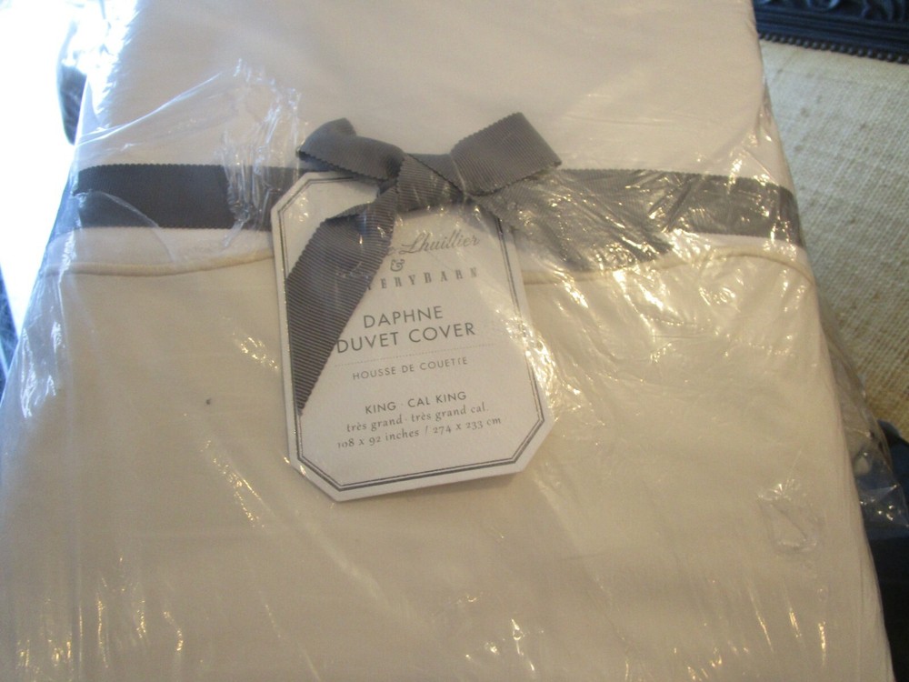 Up For Auction is - Pottery Barn Monique flax Lhuillier Daphne Organic Percale Duvet Cover King New Made from 100% organic cotton percale. Duvet reverse to same. Duvet features a hidden button closure with inner ties that keep insert in place Smoke and pet free home.