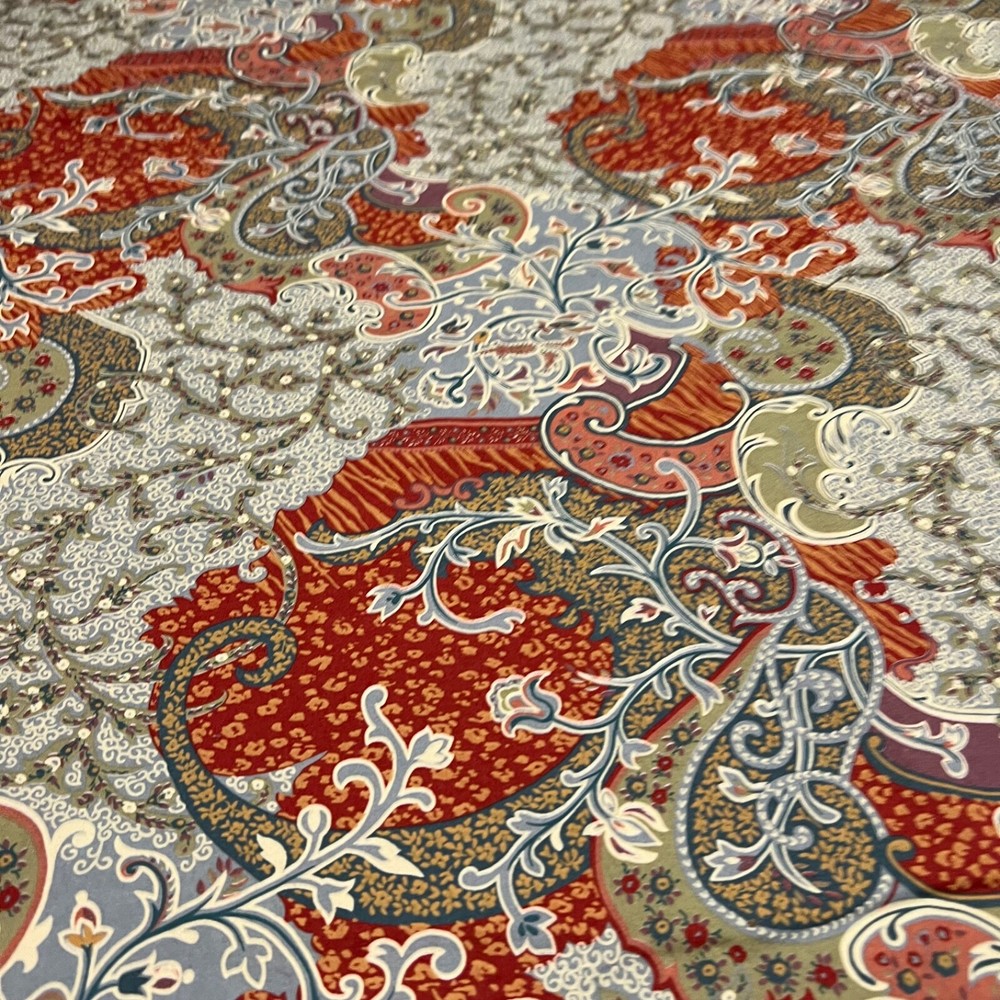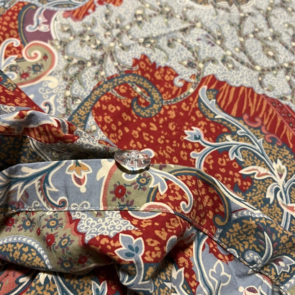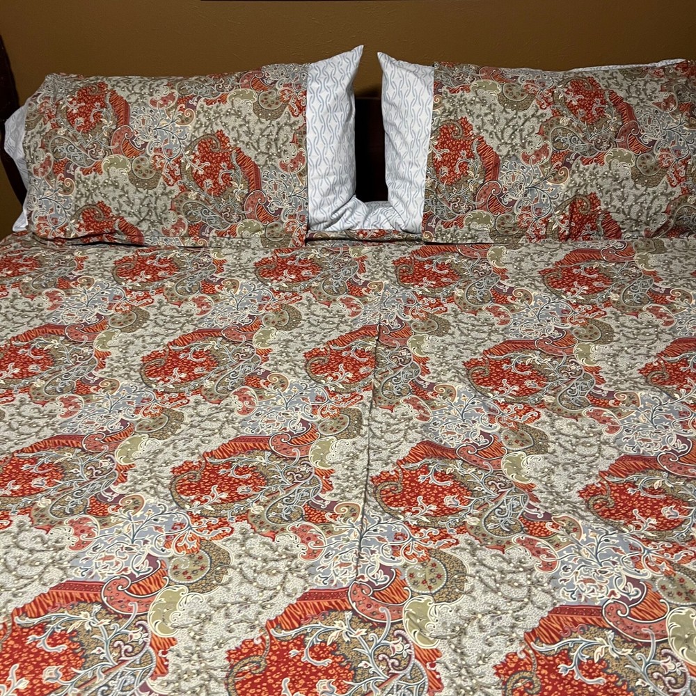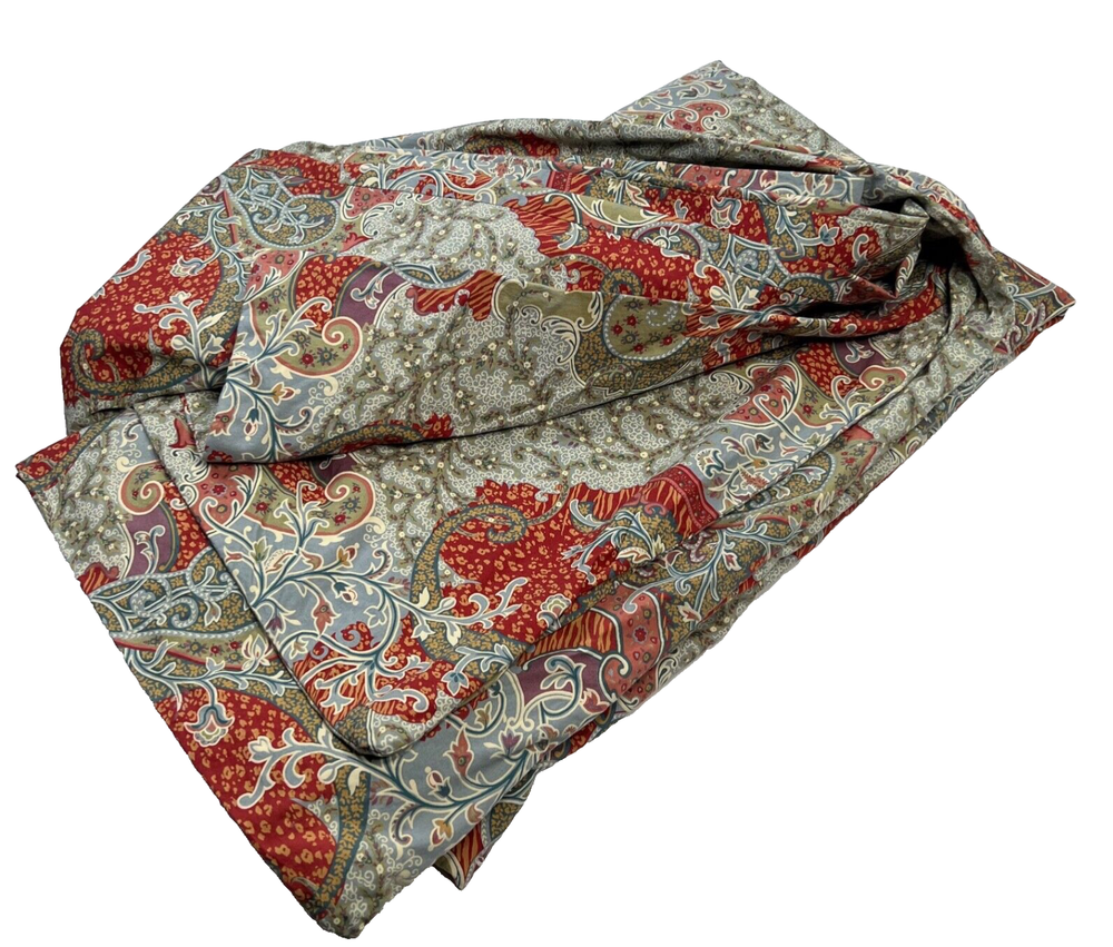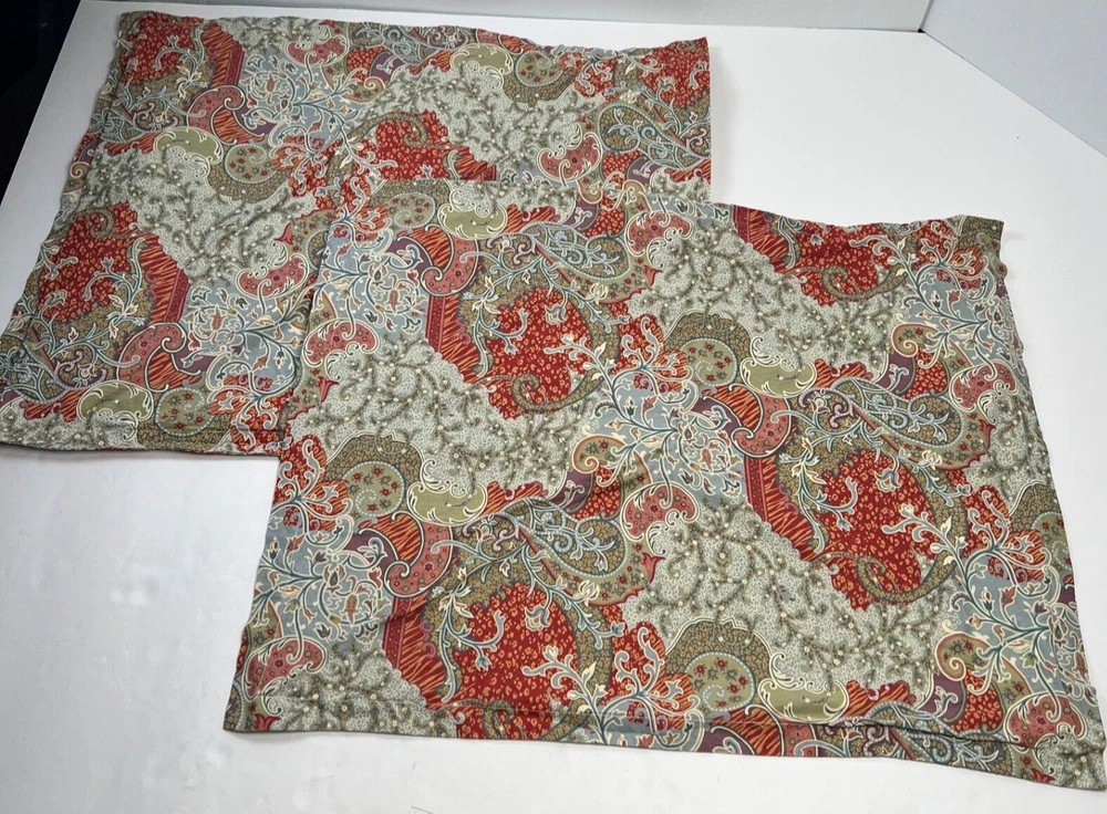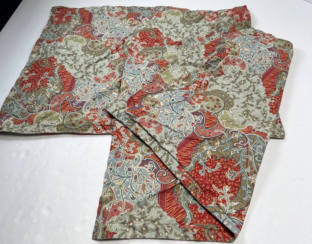 This is a Pottery Barn Monreal Paisley Duvet Cover set in King size made of 100% Cotton in Italy. The set includes two Standard shams. The design features a multicolor paisley pattern, suitable for a bedroom. Pre-owned, in good condition. D780