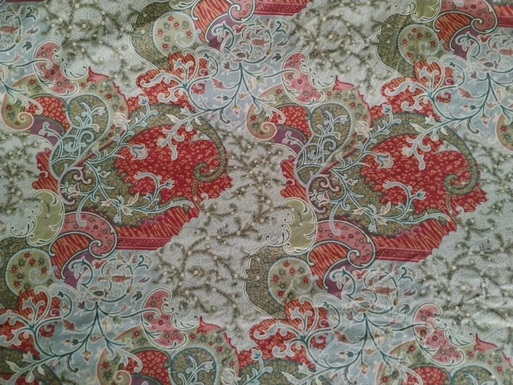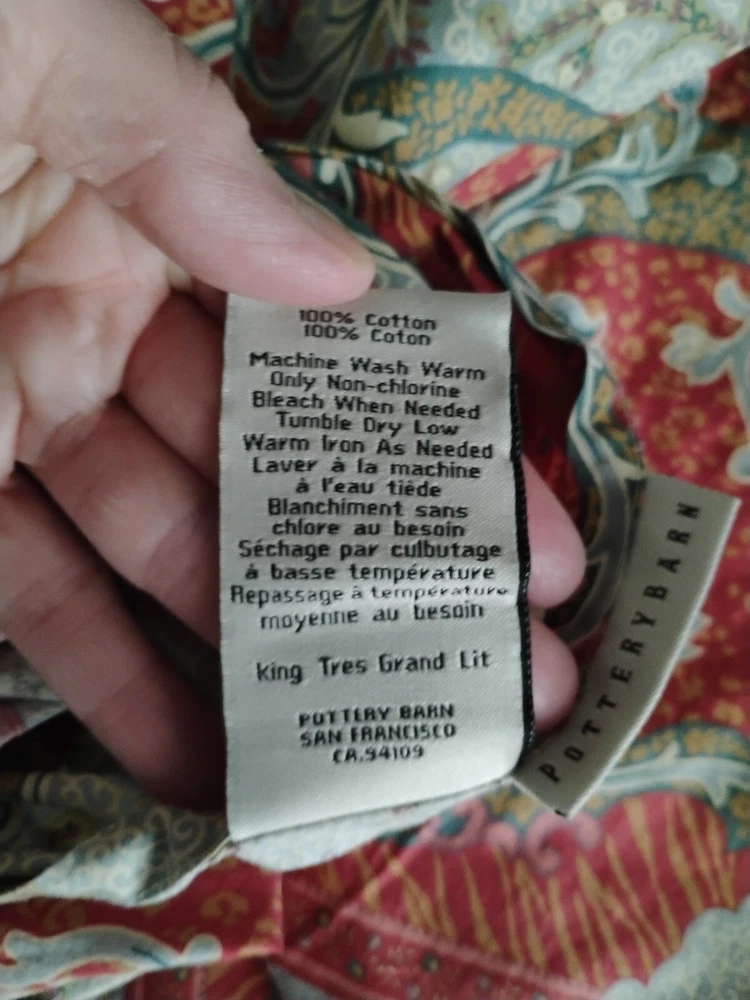 Add a luxurious and traditional touch to your bedroom with this beautiful king-sized duvet cover from Pottery Barn. The multicolor paisley and floral pattern is perfect for those who love classic designs that include paisley and flowers. In shades of light blue/gray, greens and red. The rectangular shape and Italian 100% cotton fabric ensure a comfortable and peaceful sleep. The duvet cover is easy to care for and machine washable. It features buttons for closure and does not include the duvet. The Pottery Barn Monreale Duvet Cover is a great addition to any bedroom and will surely make you feel like royalty. In excellent pre-owned condition with no discoloration, rips or picks. Please ask all questions before buying as items are only returnable if not as described.