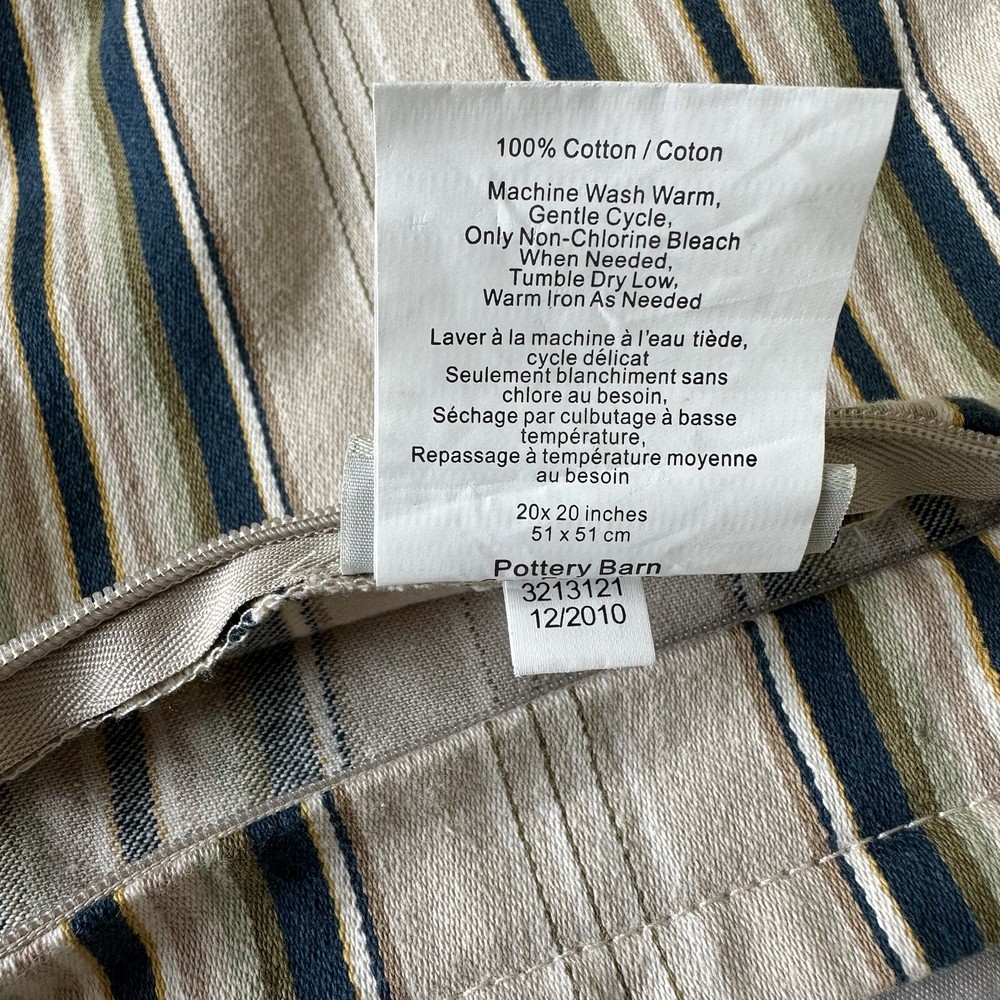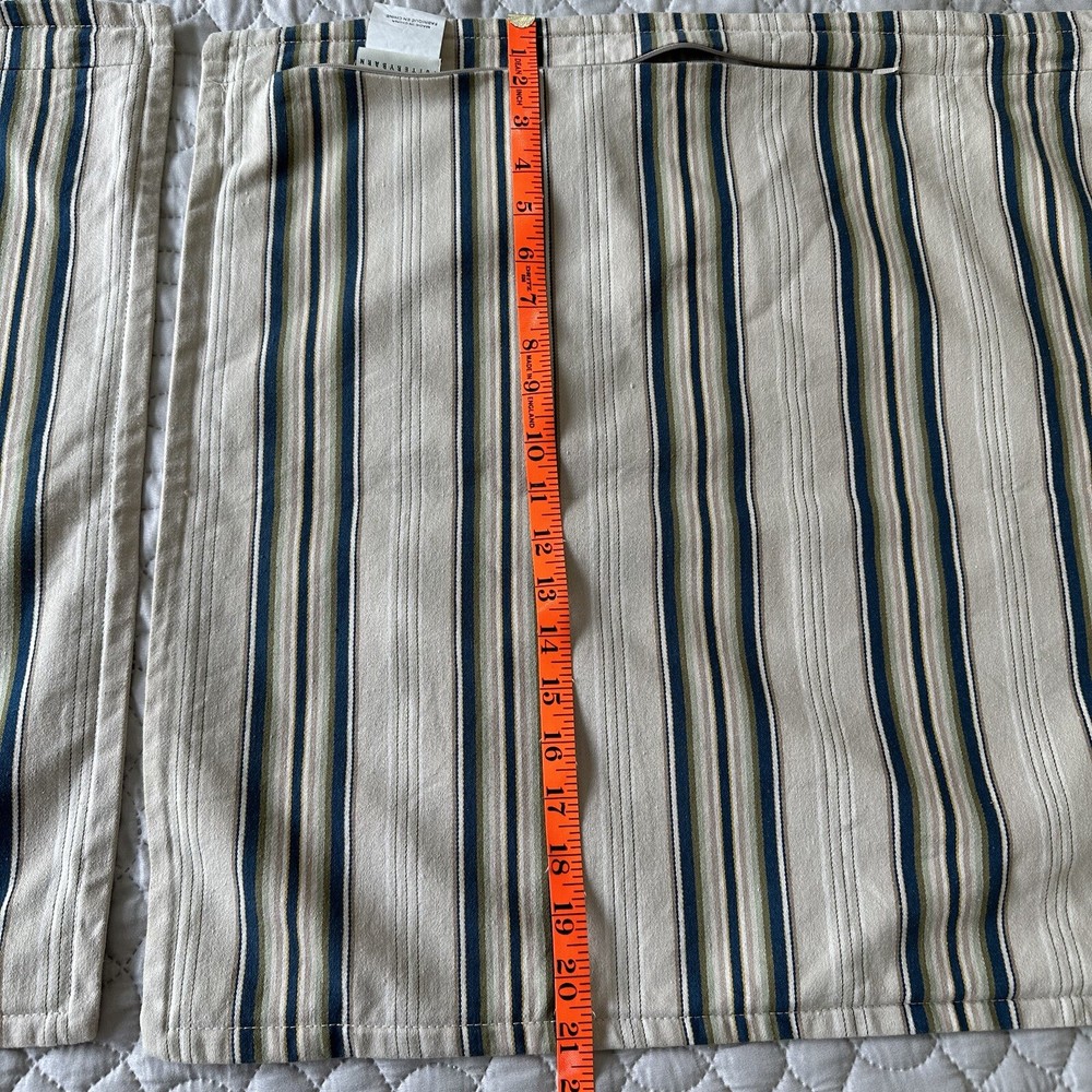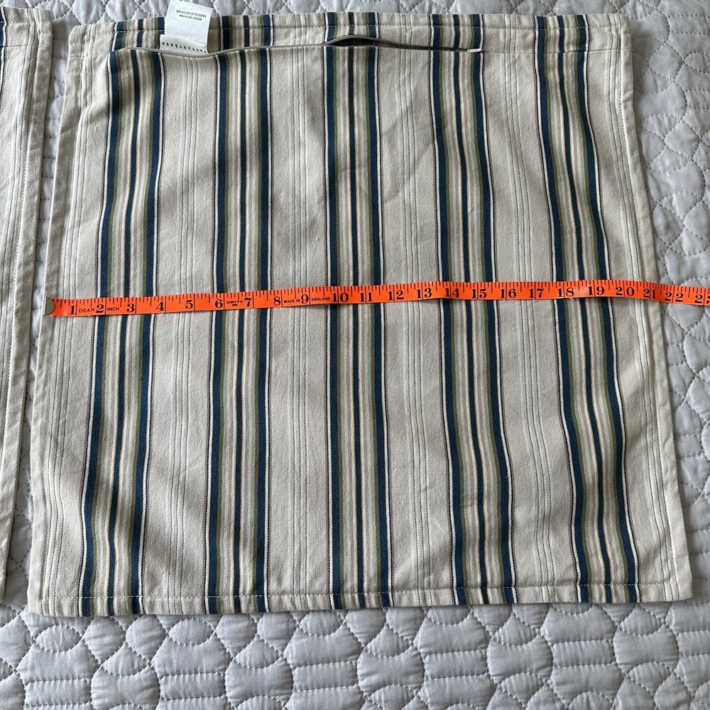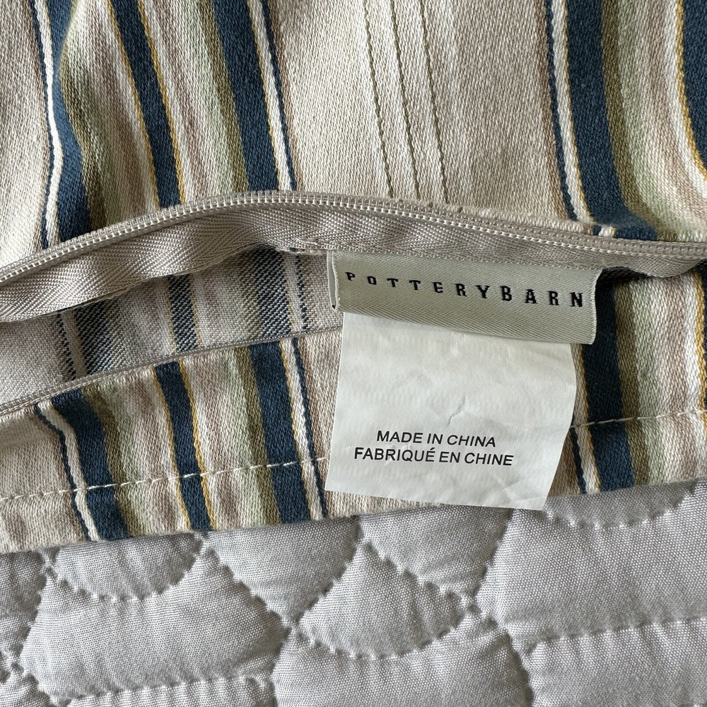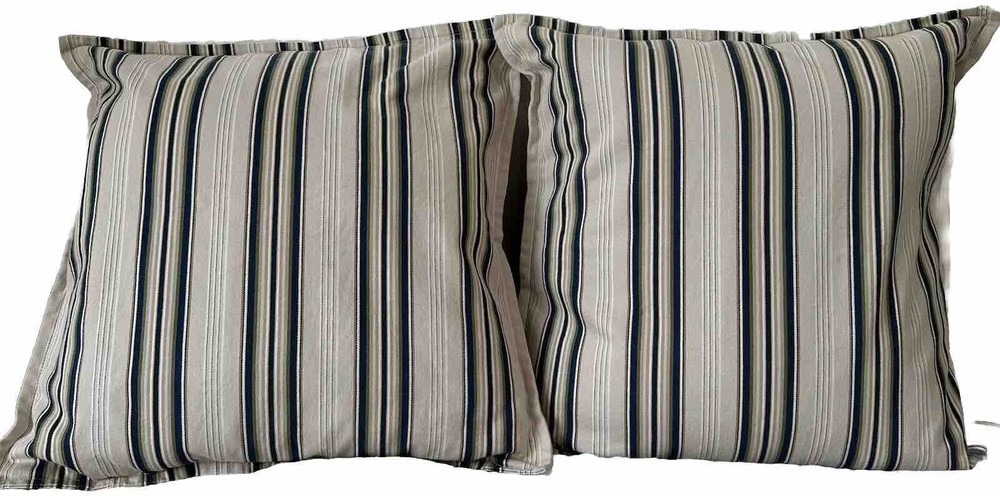 Pottery Barn Morrison Stripe Sham Euro Size 20” 2010 Set Blue Green Brown Cotton. Pottery Barn striped shams set of 2. Measure 20x20”. 100% Cotton, zipper closure. In excellent preowned condition. Free of any stains or tears. From a smoke free home.