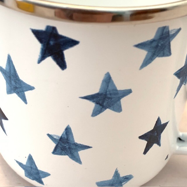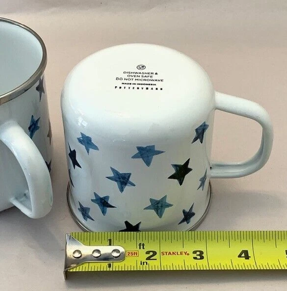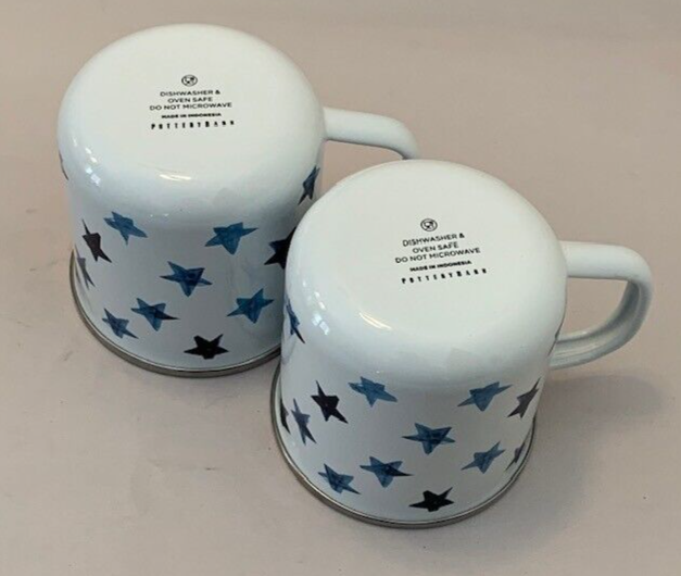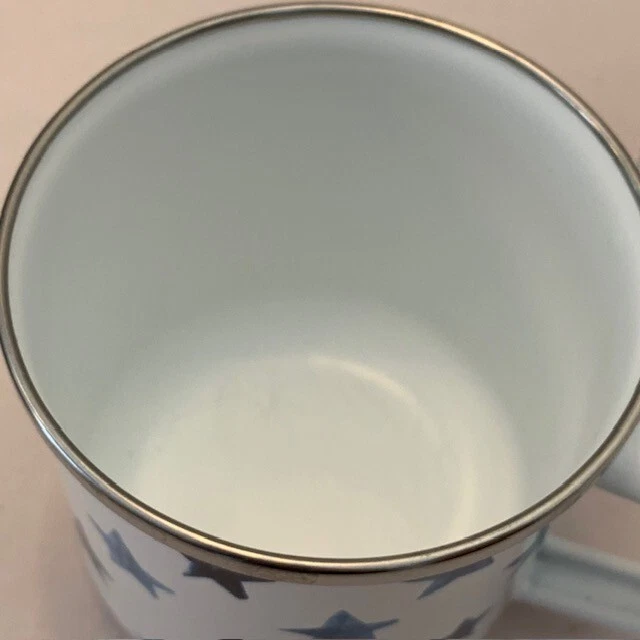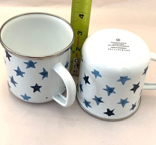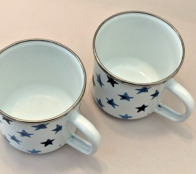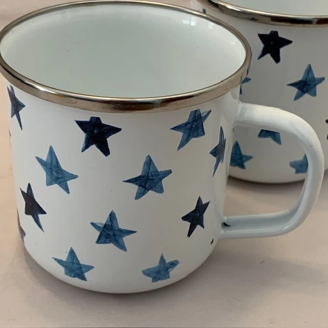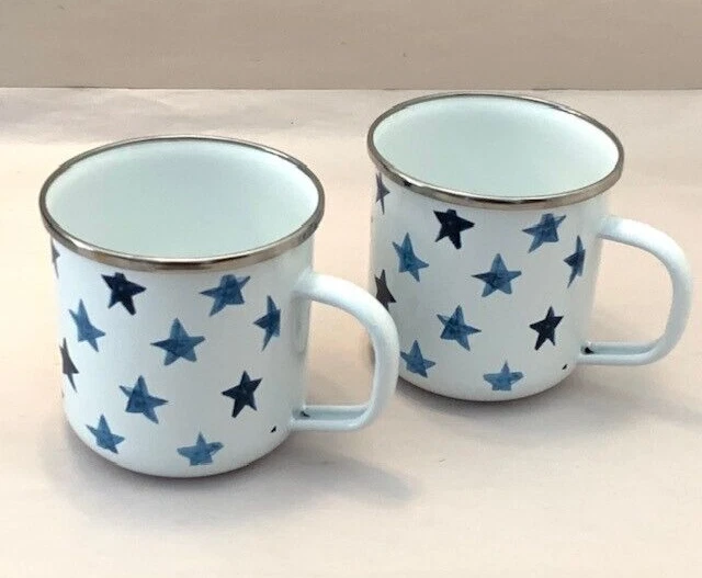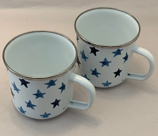 Pottery Barn Mug Cup Americana Blue Stars Enamel Metal Farmhouse Western Set of 2 Retro Pottery Barn set of 2 mugs, metal and enamel, both in very good preowned condition, minimal marks or abrasions. White with shades of blue stars. 3.5" with handle. Limited Edition Please review all photos for details and condition Happy to combine shipping, visit store Keepklassy for more options. Please reach out with questions.