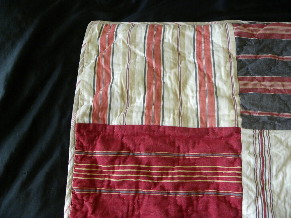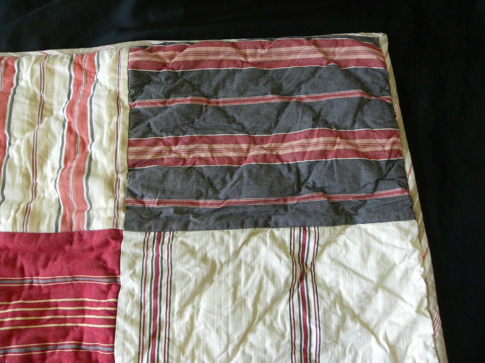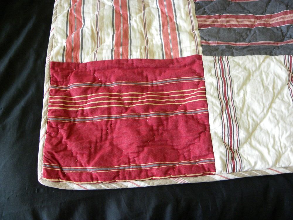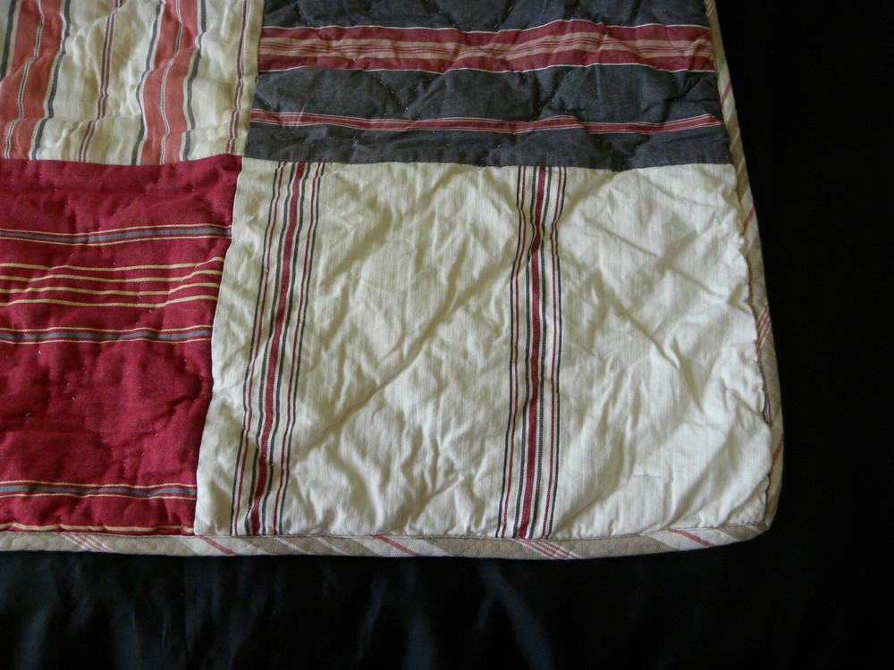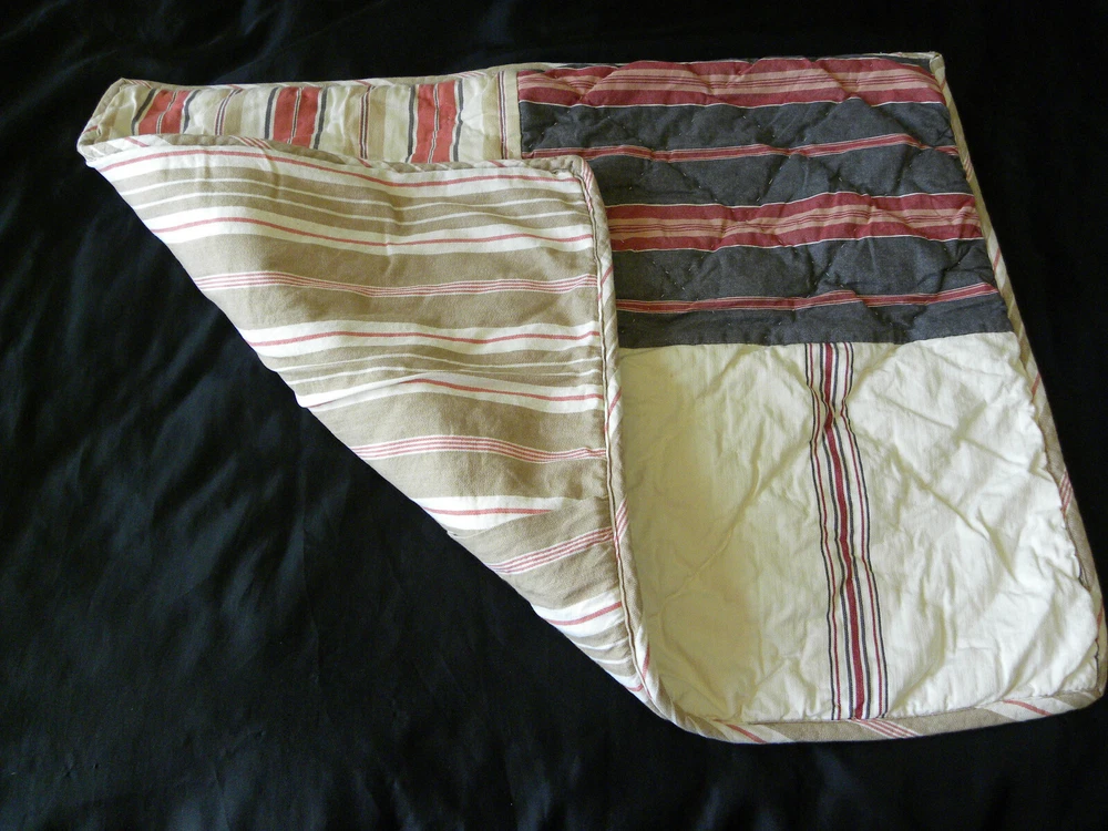 Add a touch of country style to your bedroom with this beautiful Pottery Barn pillow sham. The rectangular sham is made of 100% cotton and features a patchwork design in multicolor stripes. It is quilted for extra comfort and can be easily cared for with machine wash and tumble dry. This standard size pillow sham is perfect for both teens and adults. It is designed with a thread count of 201-400 and has no closure type. The sham is part of the Pottery Barn product line and is ideal for use in the bedroom.