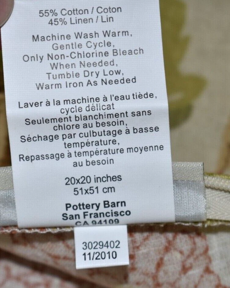 This gorgeous Pottery Barn pillow cover is even prettier in person! The cotton-linen blend feels so soft and high-quality, and the floral butterfly design adds a lovely pop of color. In excellent used condition—barely looks worn. Super easy to toss in the wash, and the zipper makes changing covers simple. Great size too—perfect for sprucing up a chair or bed. Super happy with this find, especially at this price!