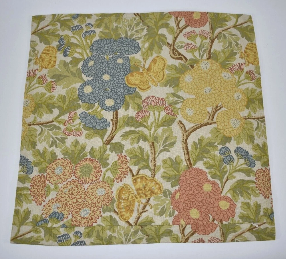 Pottery Barn Mum Garden Floral Butterfly Pillow Cover 20x20 Cotton Linen EUC! Condition: Very good, clean, gently used condition. Dimensions: Approx.20" Square Colors: Multicolor Made of 55% Cotton 45% Linen blend. Overall: 20" square Zipper closure. Insert not included. Machine wash. Imported. Buyer pays $5.60 shipping. Thanks so much!