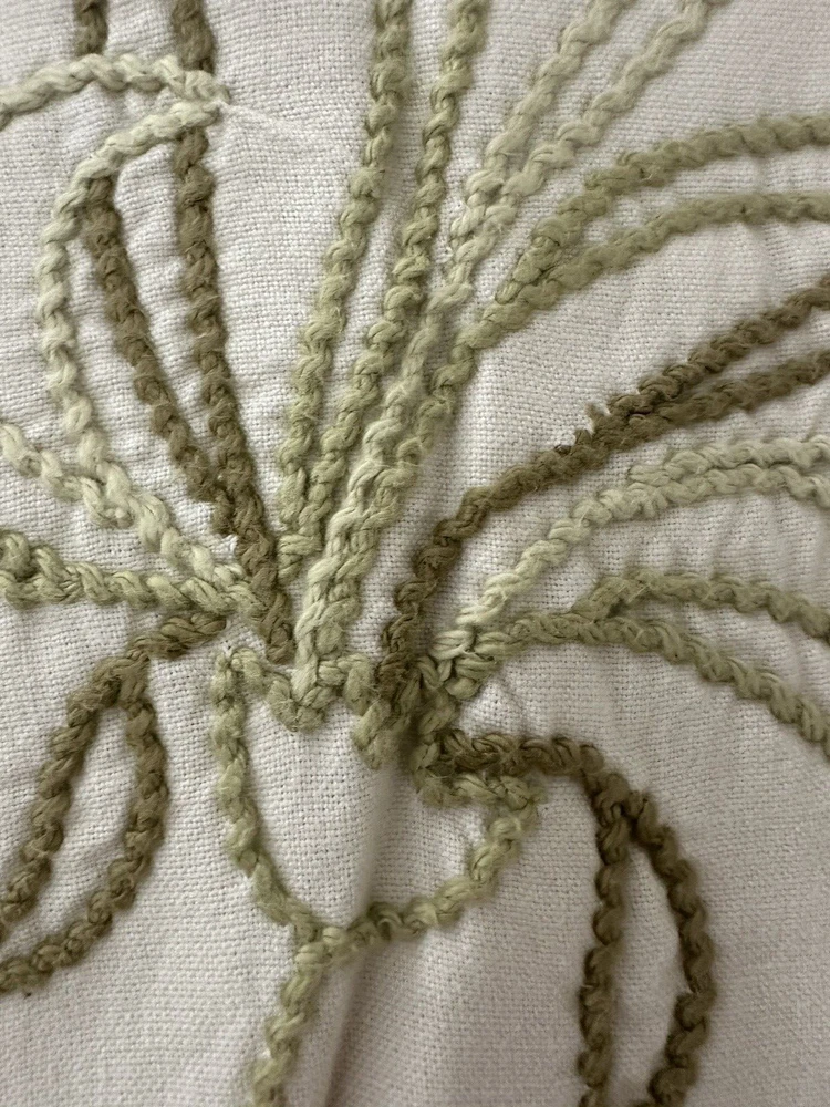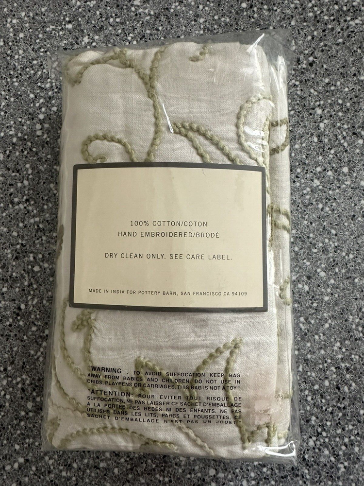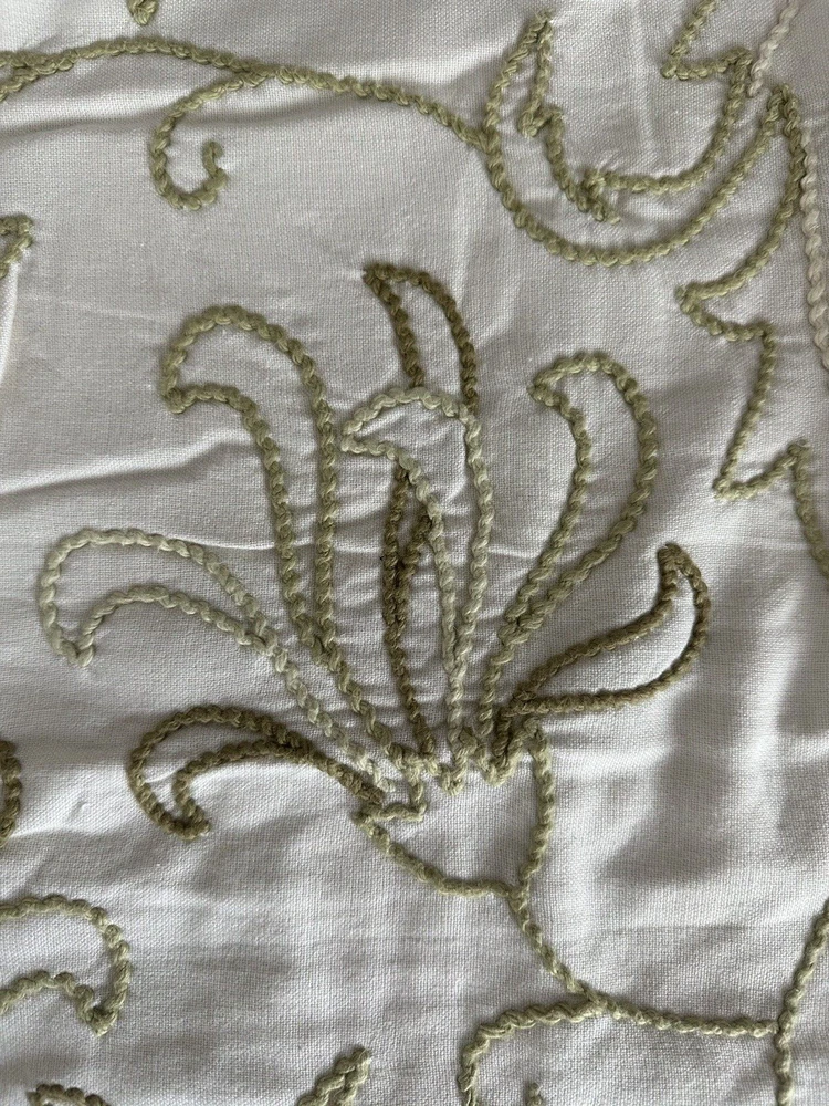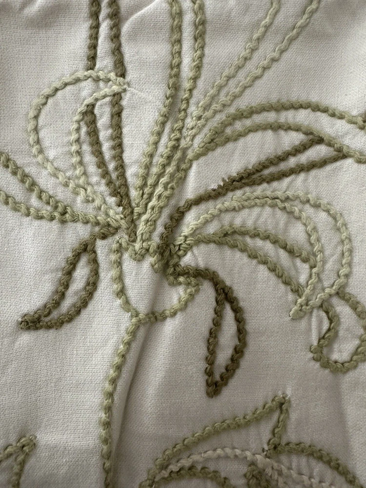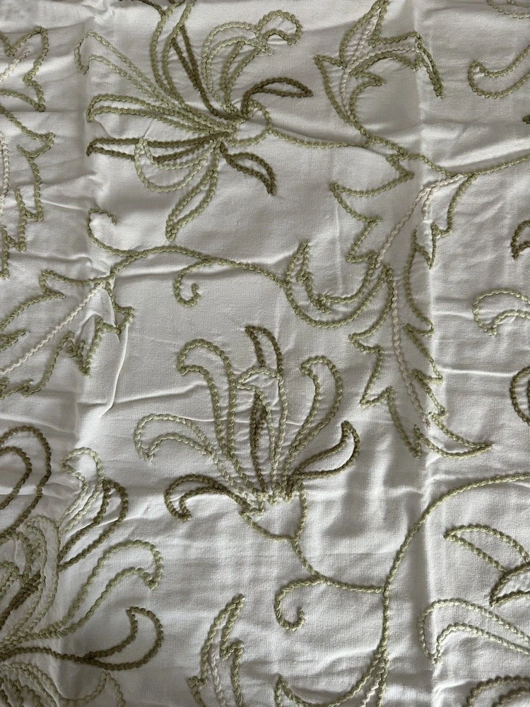 Pottery Barn ~ Filigree HAND embroidered EURO Pillow Sham Quantity: (1) EURO Sham Item is NEW (old stock) in original packaging. Hard to find older pattern. Ivory cotton with beautifully hand embroidered Leaves and Plants in varied shades of green. Tropical style. Reverse side is solid ivory. Any questions, please ask prior to purchase. Please check out my other treasures! New and hard to find items listed weekly. I usually offer 4 shipping options, so please compare and select the best option for you. I am always happy to combine items to save you money on shipping costs. Please request PRIOR to making payment. Thank you for browsing my store, I greatly appreciate it!