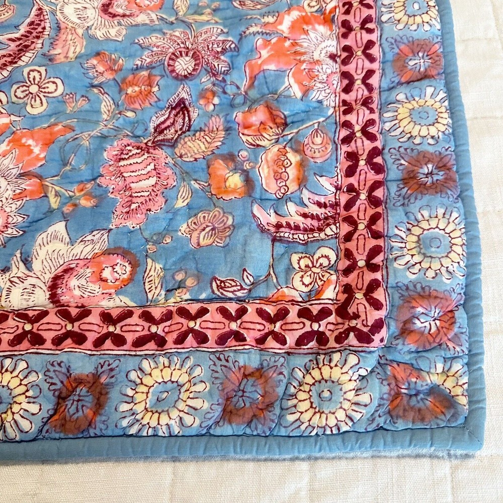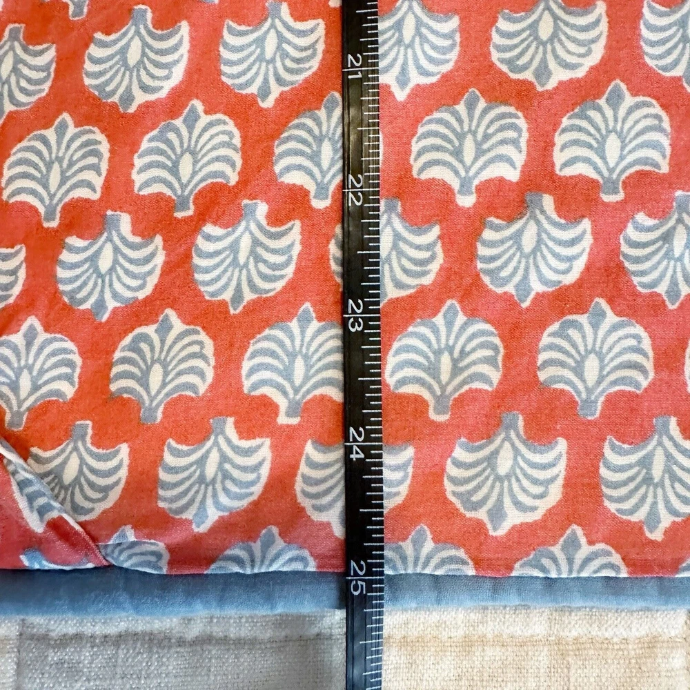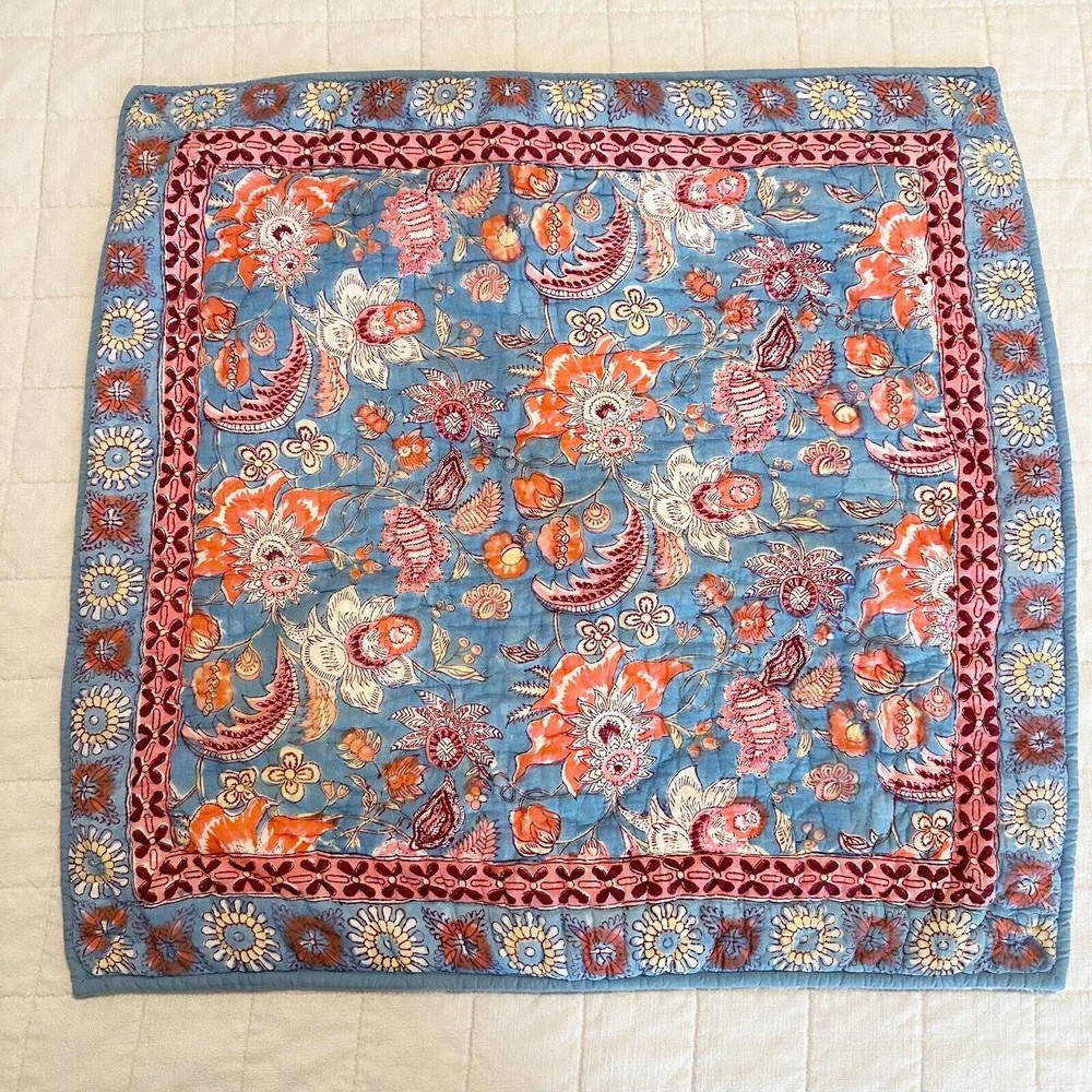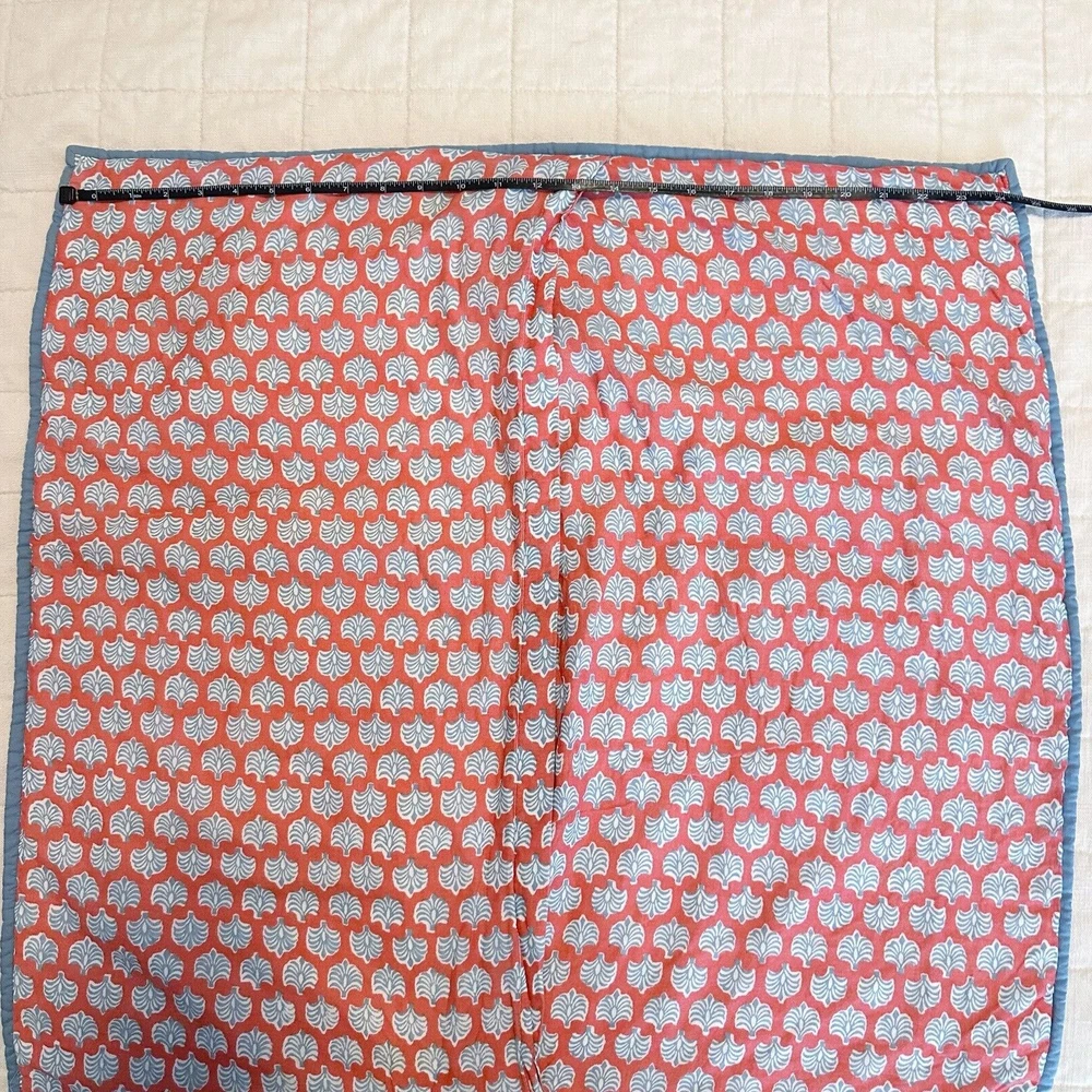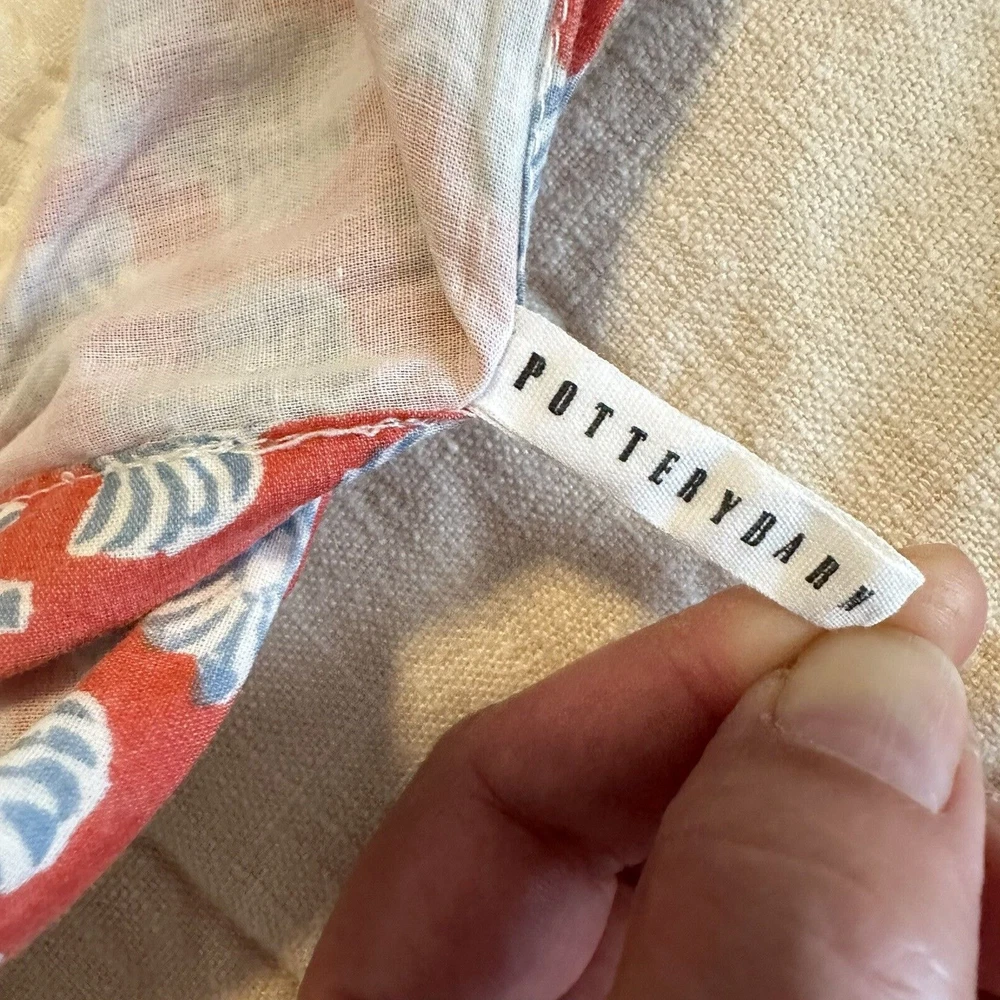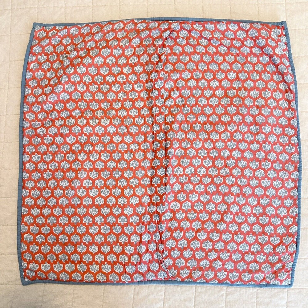 <![CDATA[<div>Add a touch of boho style to your bedroom with the Pottery Barn Nalini Reversible Block Print Euro Sham. This pillow sham features a beautiful floral pattern in reddish coral and dusky blue. Designed To Fit A Euro-Sized Pillow The sham is machine washable and features a reversible design, giving you the option to switch up your decor easily. Good Preowned Condition - edges are shorter than centers but will still fit a euro sham. Actual item shown - please review photos for more details. Smoke Free, Dog Friendly Home Fabric Tags Have Been Removed, Website Says 100% Cotton Voile With A 100% Cotton Fill Envelope Closure Single Sham