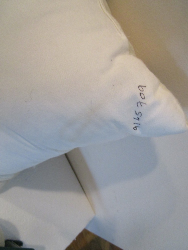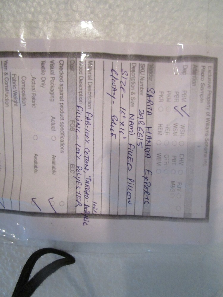 Up For Auction is - Pottery Barn Nami Decorative Pillow 16 blue New sample without tags Made of 100% cotton. Reverses to solid ivory. Sewn closed. Polyester insert included. Spot clean. Imported. has numbers printed on the back of pillow Smoke and pet free home. kar