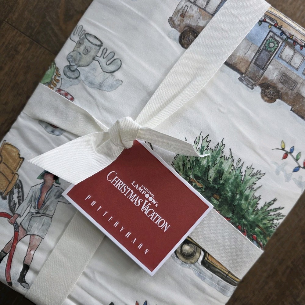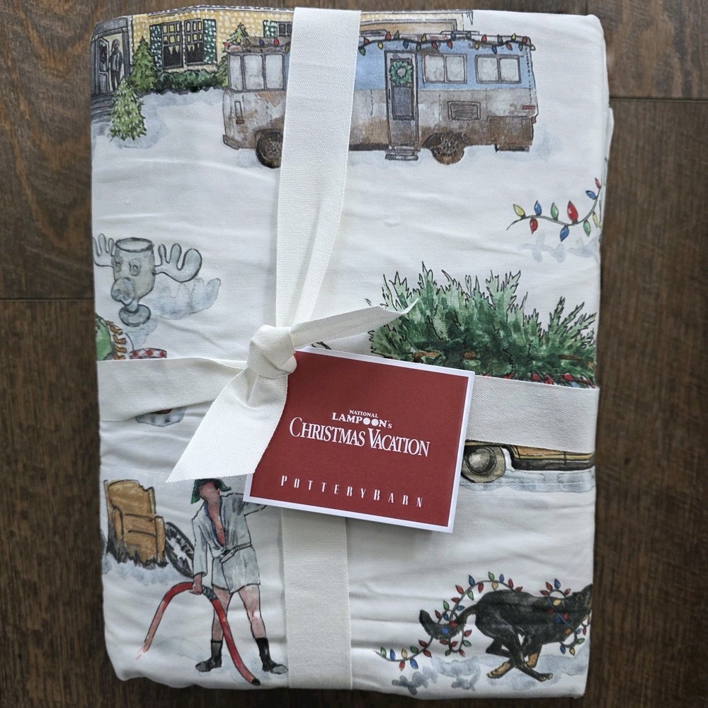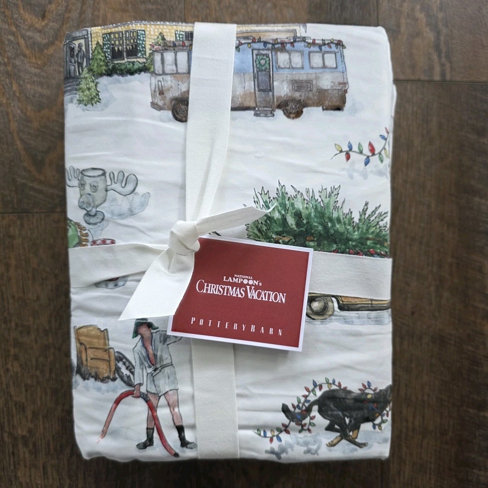 Material: Woven of 100% cotton percale. Thread Count: 200-thread count. Complete Set: Set includes flat sheet, fitted sheet, and two standard pillowcases; King/Cal. King includes king pillowcases. Twin/Twin XL set includes flat sheet, fitted sheet, and one standard pillowcase. Perfect Fit: Fitted sheet fits mattress up to 16" deep. Twin XL fitted sheet accommodates both standard twin and twin XL dorm mattresses. Secure Design: Pillowcase features an inside flap to hold the pillow neatly in place. Extra pillowcases are sold in sets of 2. Certification and Standards: OEKO-TEX® STANDARD 100 certified, tested for 1000+ harmful substances (14.HUS.42449 HOHENSTEIN HTTI). Made in a Fair Trade Certified™ factory, empowering workers who made it. By choosing our cotton products, you’re supporting our investment in Better Cotton’s mission. This product is sourced via mass balance and therefore may not contain Better Cotton. Place of Manufacture: Imported. Licensing: NATIONAL LAMPOON'S CHRISTMAS VACATION and all related characters and elements© ™ Warner Bros. Entertainment Inc. (s23). Care Instructions Wash before first use. Machine wash in cold water; gentle cycle. Only non-chlorine bleach when needed. Tumble dry on low heat; remove promptly.
