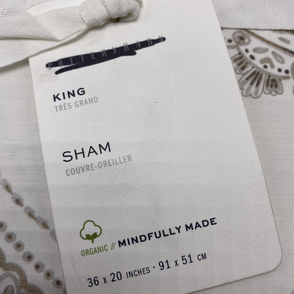 Pottery Barn Neutral Sonya Medallion Organic Percale King Sham Gray Tan 36" x 20" 100% organic cotton...